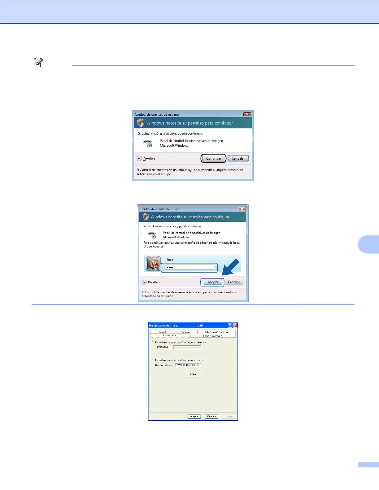 • Para usuarios sin derechos de administrador: especifique la contraseña del administrador y haga clic