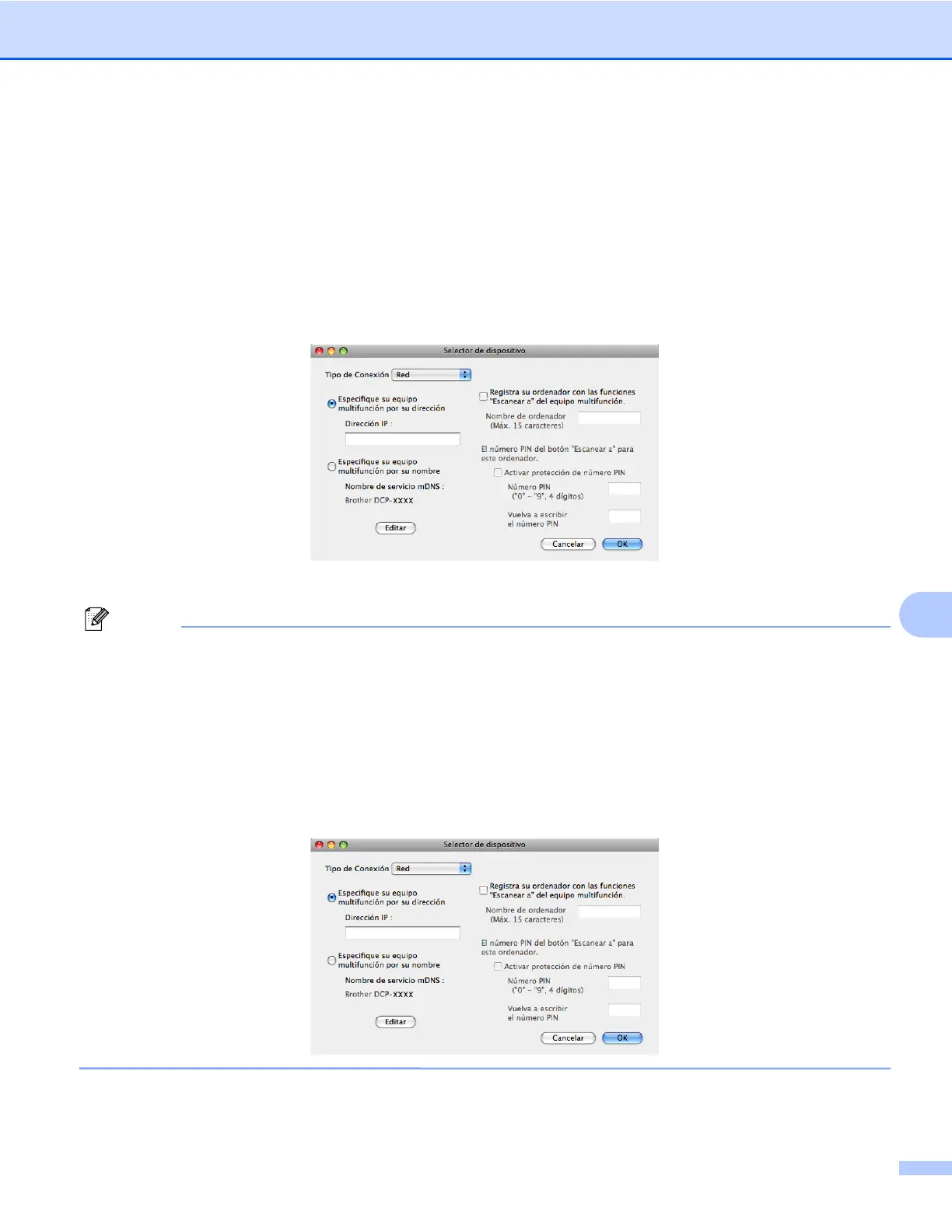 b Especifique el equipo mediante la dirección IP o el nombre de servicio mDNS. Para cambiar la dirección