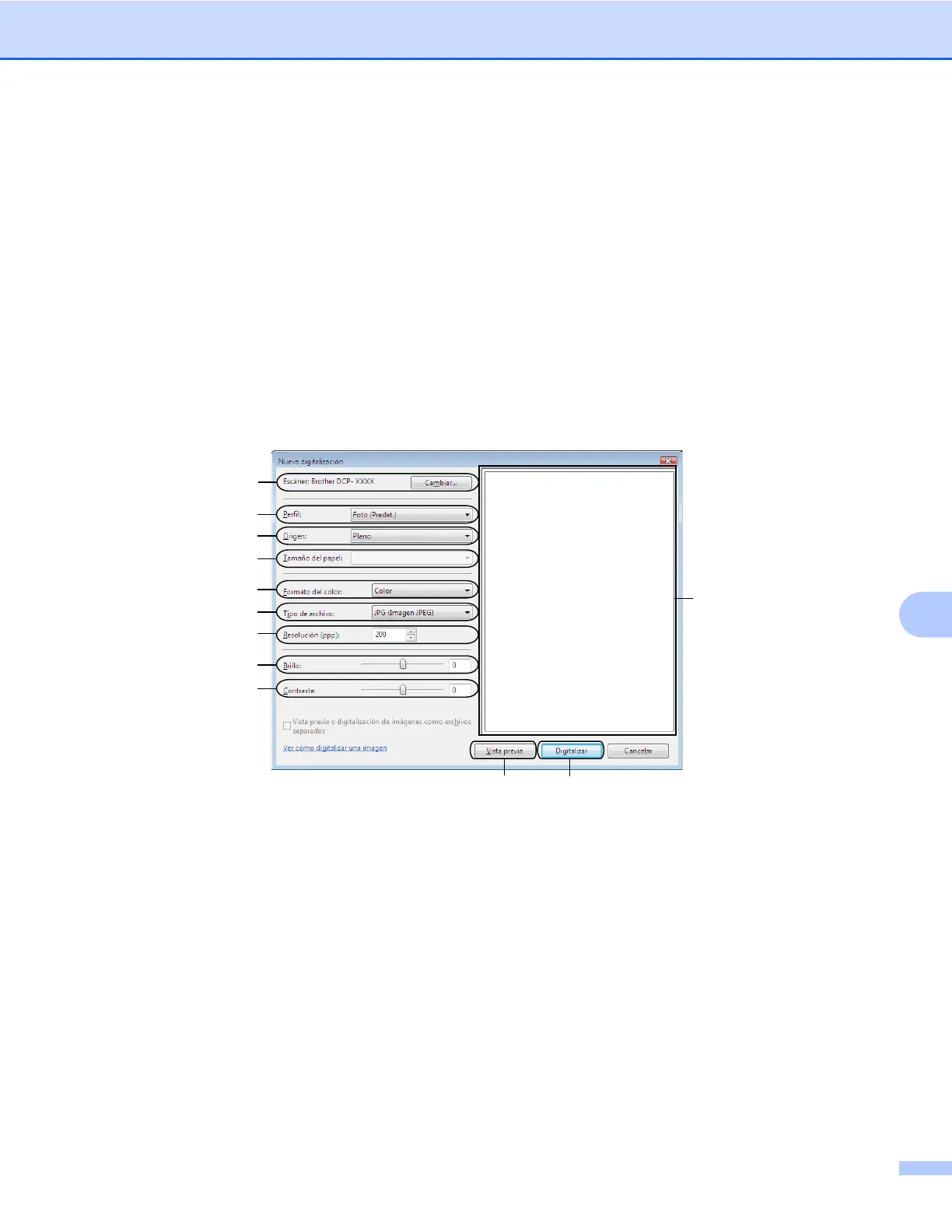 f Si fuese necesario, ajuste las opciones siguientes en el cuadro de diálogo Escáner: