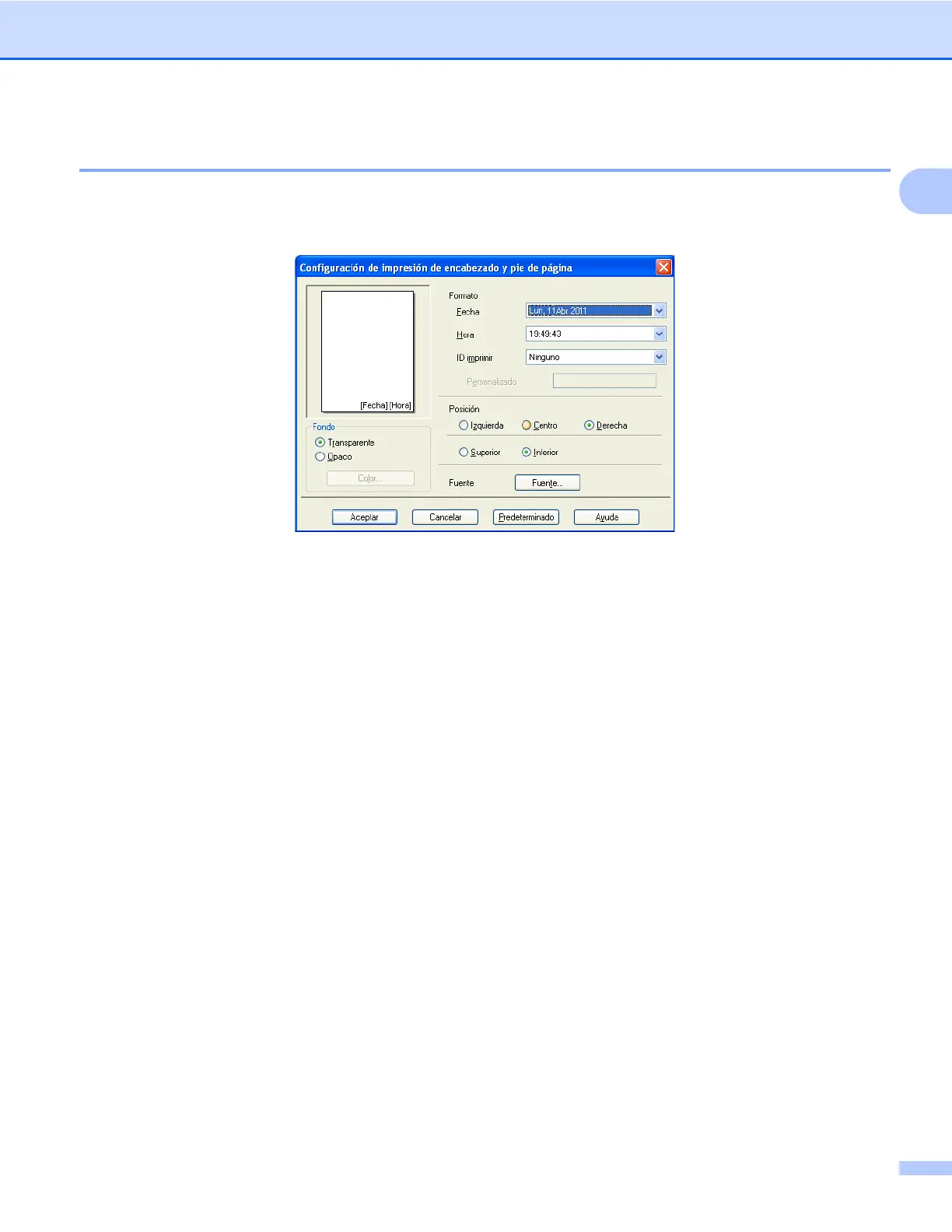Impresión de encabezado y pie de página