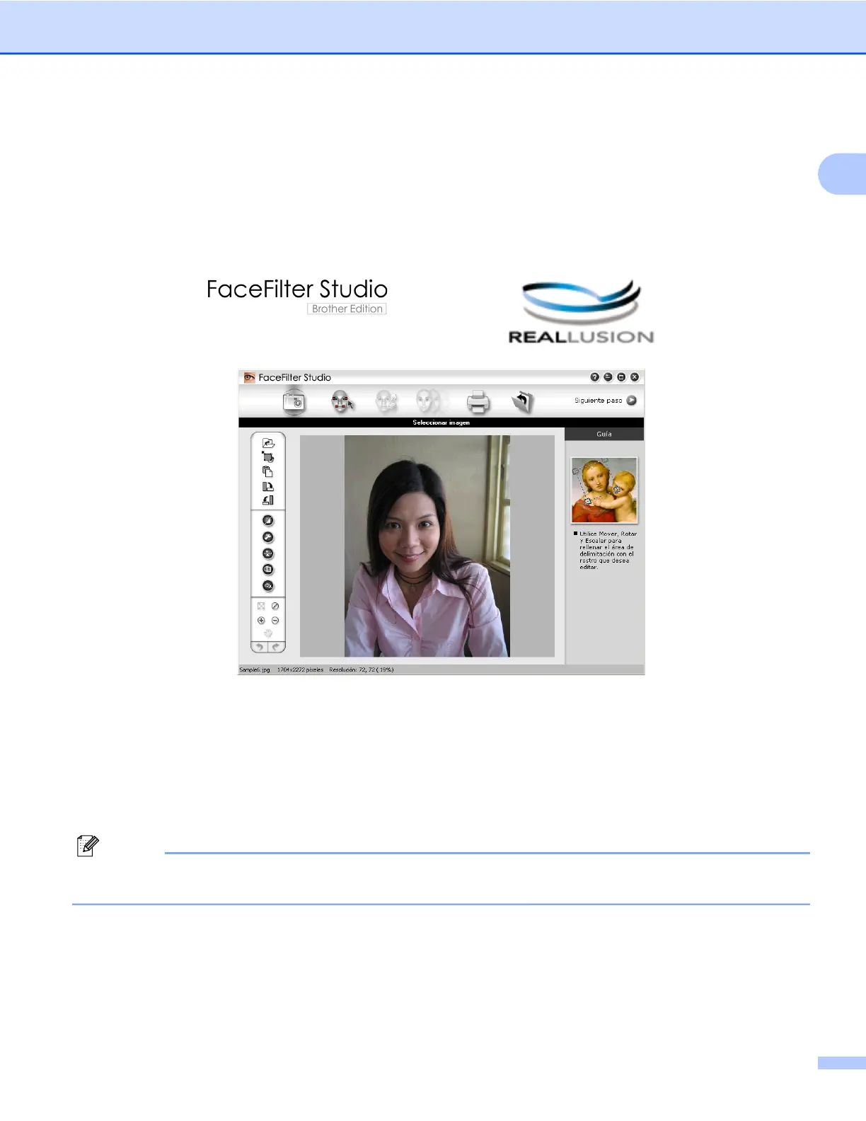 Antes de iniciar FaceFilter Studio por primera vez, debe asegurarse de que el equipo Brother esté encendido