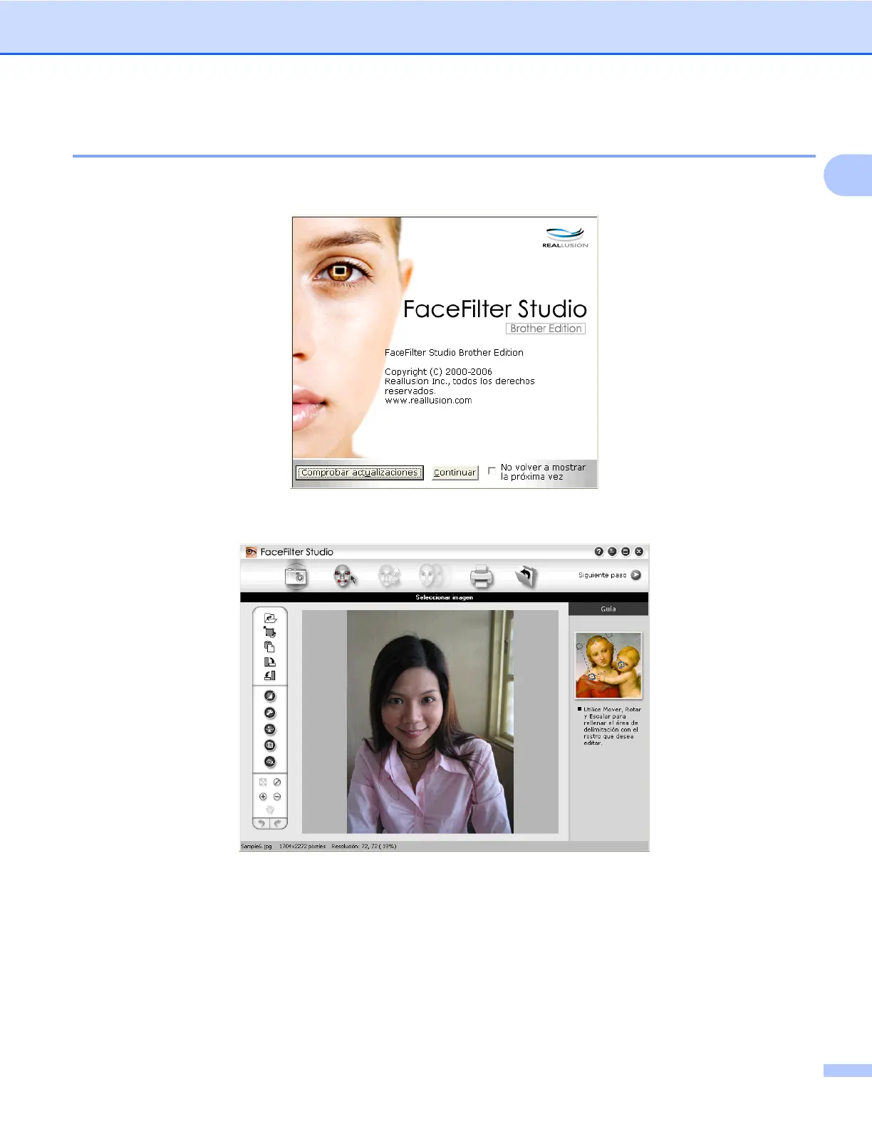 a Al iniciar FaceFilter Studio por primera vez, si el equipo Brother está encendido y conectado al ordenador