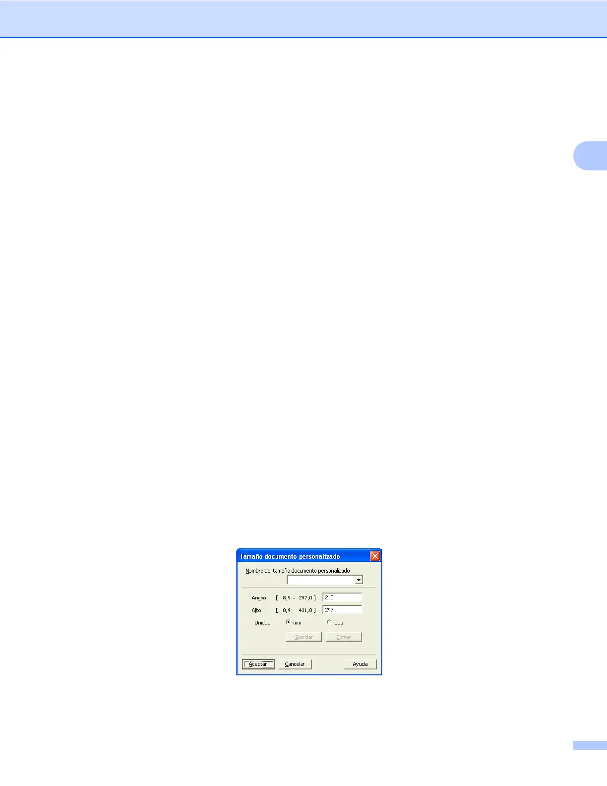 Si elige Personalizar para el tamaño, aparecerá el cuadro de diálogo Tamaño documento