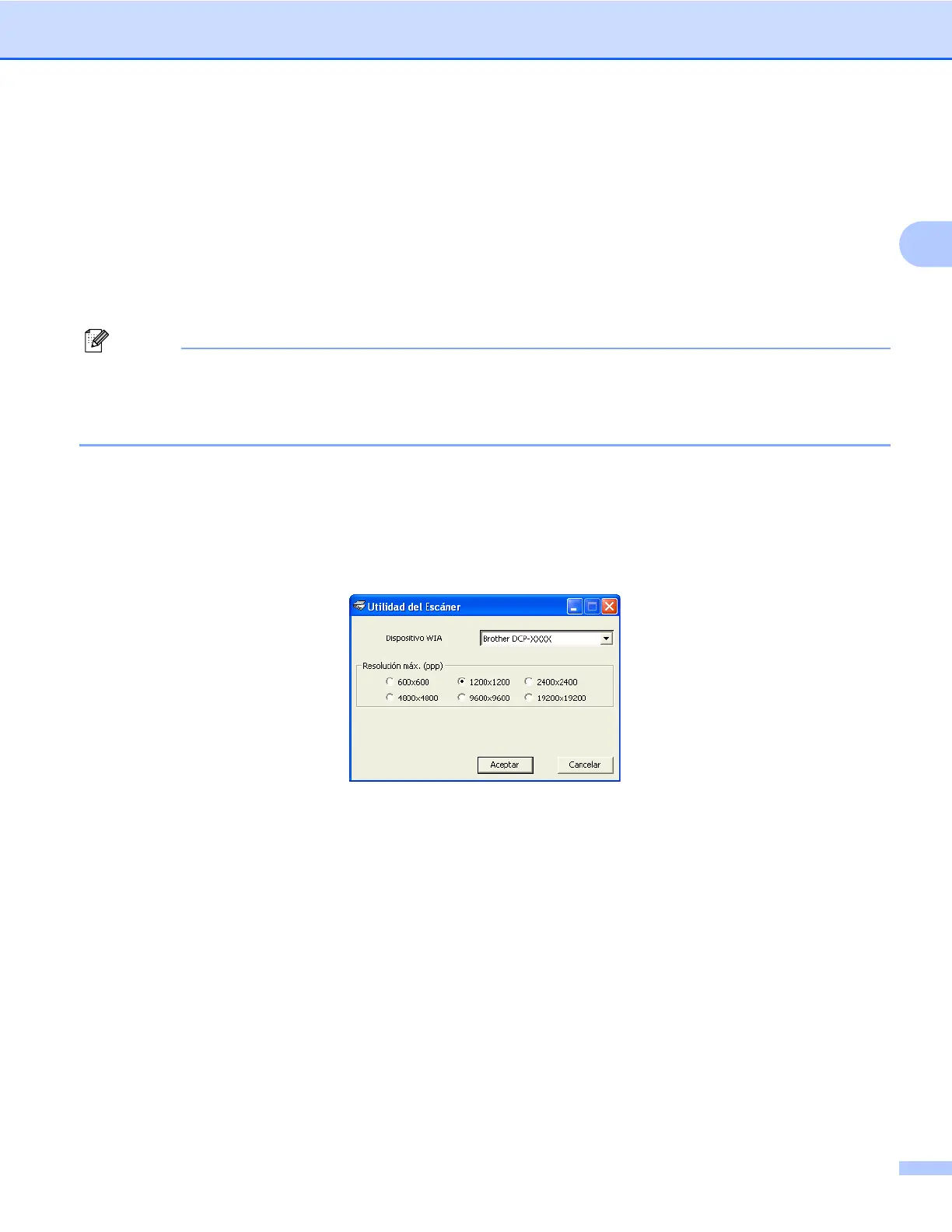 Utilidad del Escáner se utiliza para configurar el controlador de escáner WIA para resoluciones superiores