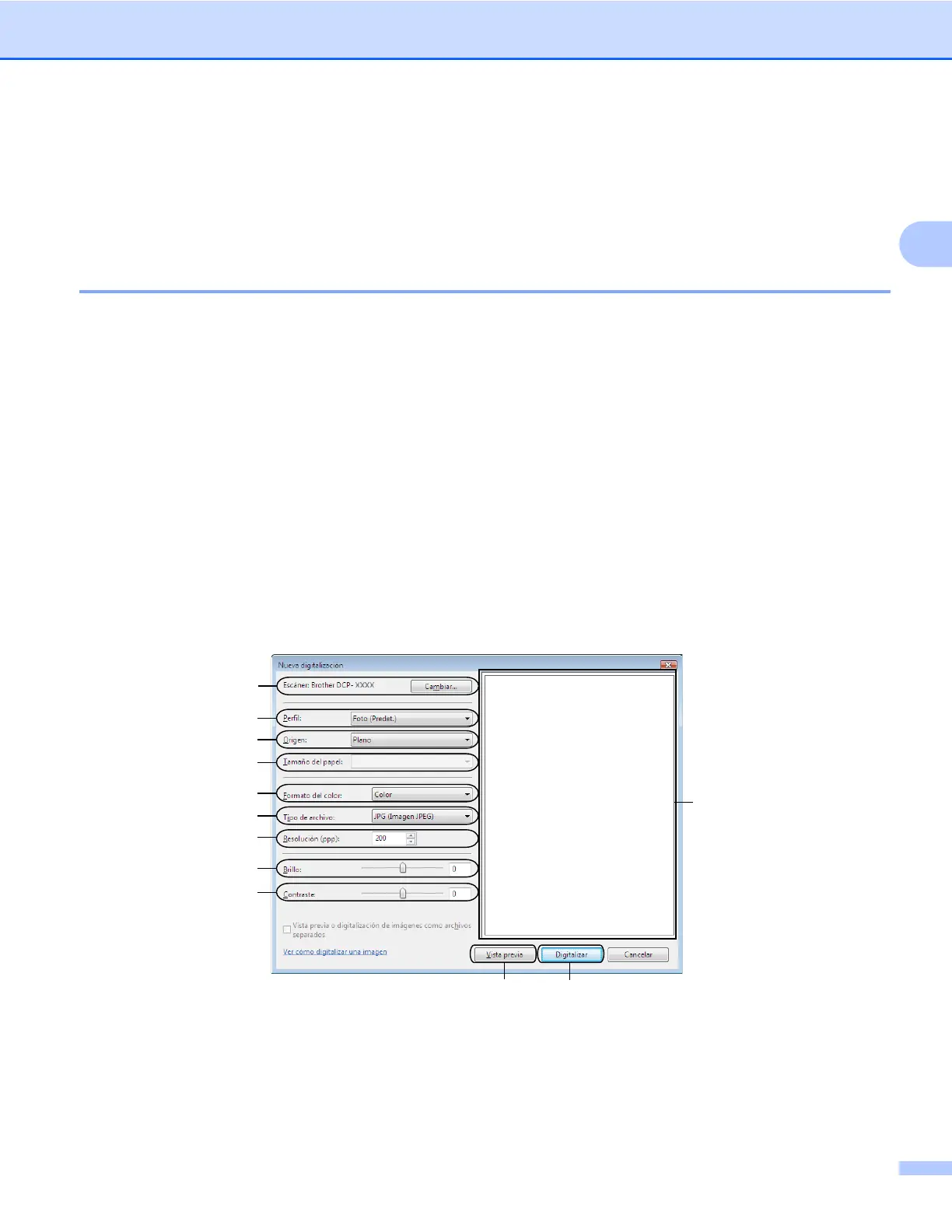 f Si fuese necesario, ajuste las opciones siguientes en el cuadro de diálogo Escáner: