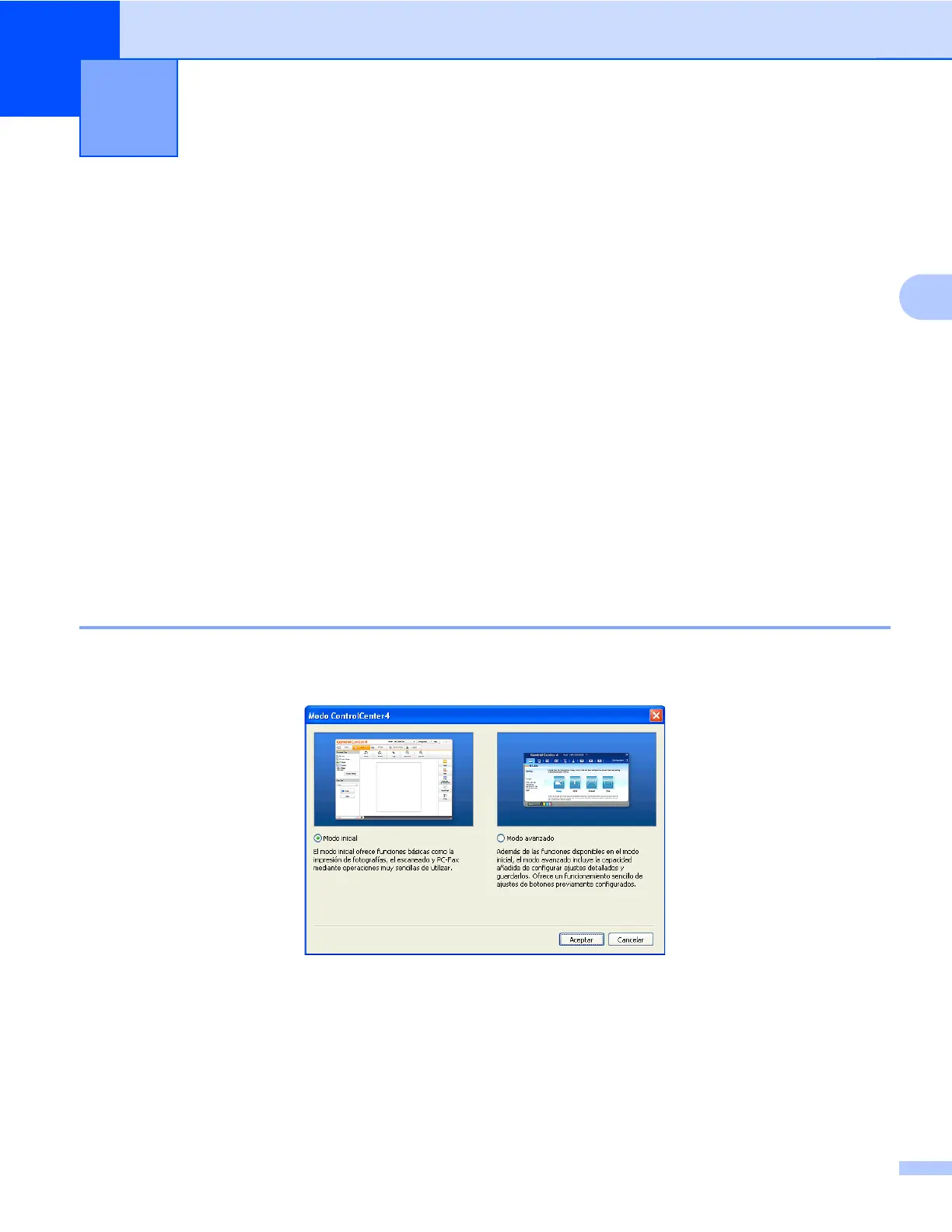 ControlCenter4 tiene dos interfaces de usuario: Modo inicial y Modo avanzado.