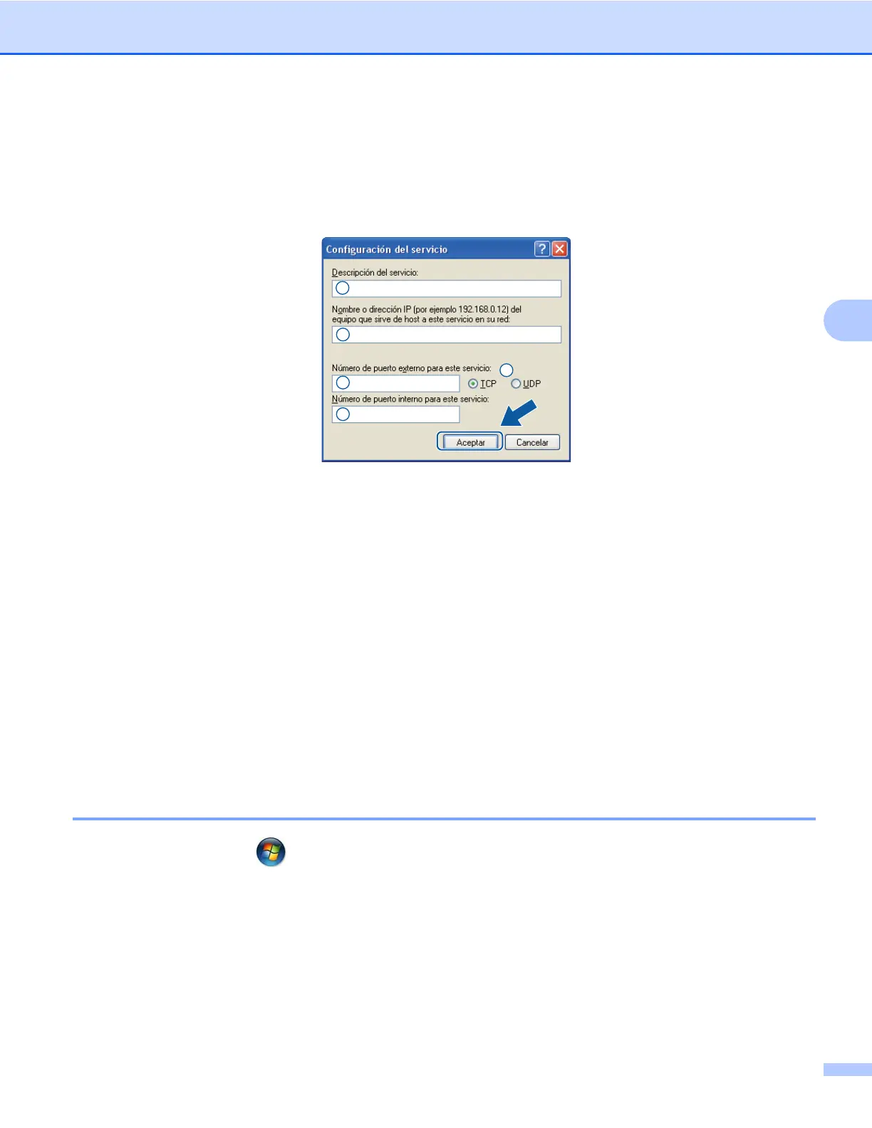 f Añada el puerto 137 para el escaneado en red, especificando la información siguiente: