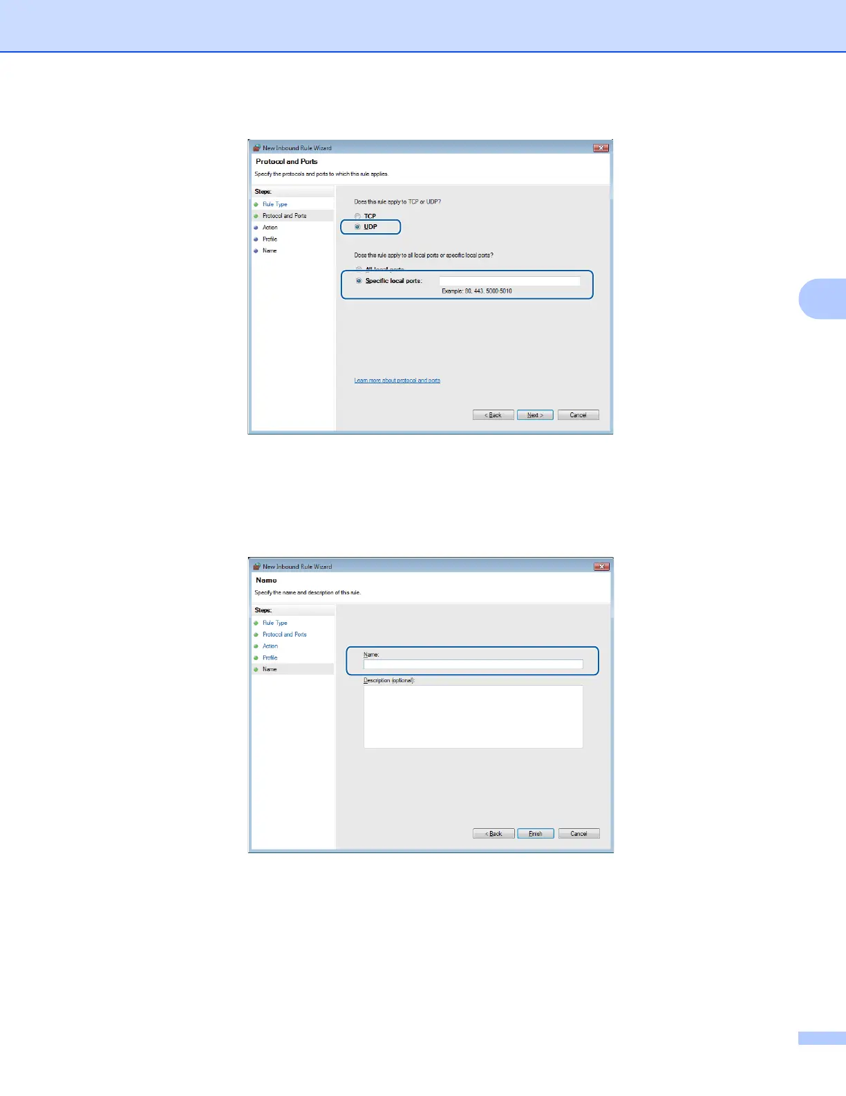i Enter any description in Name: (for example “Brother Scanner”) and click Finish.