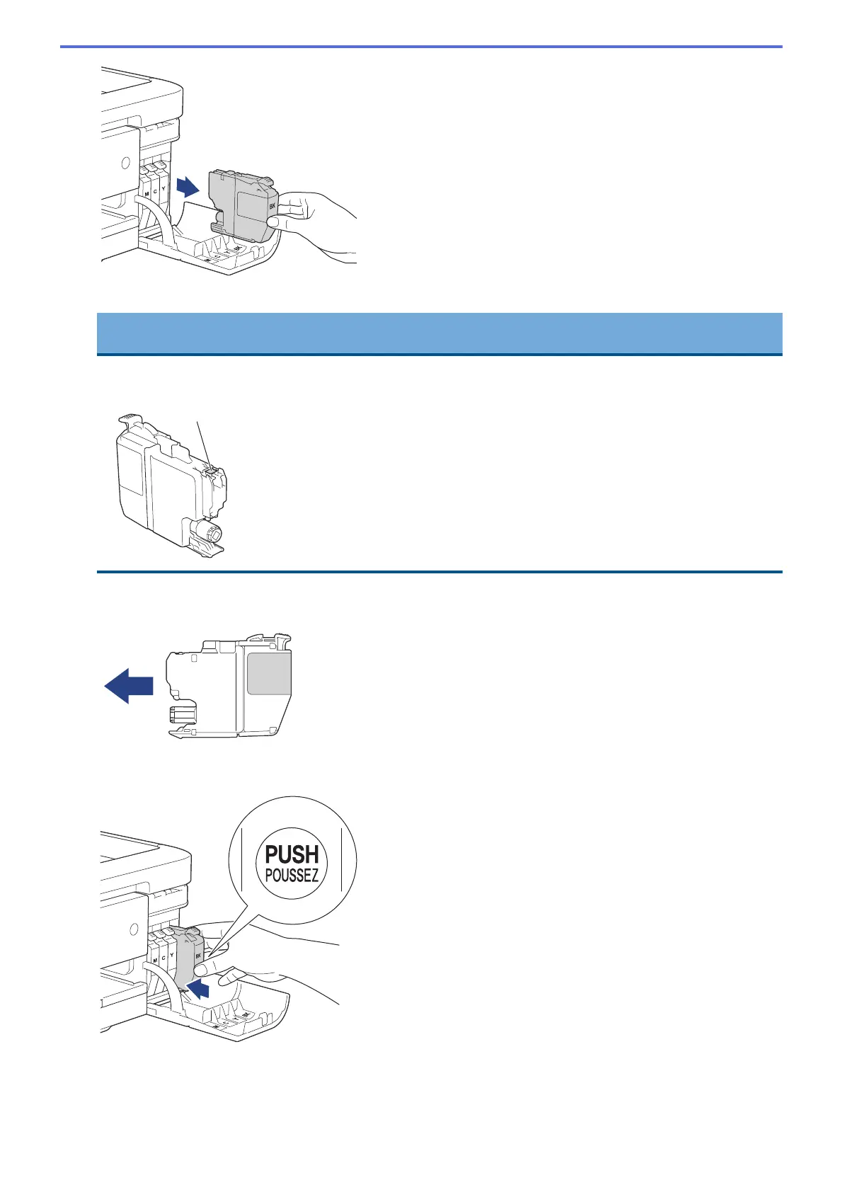 5. Gently push the area marked “PUSH” until the ink cartridge locks into place, and then close the ink cartridge