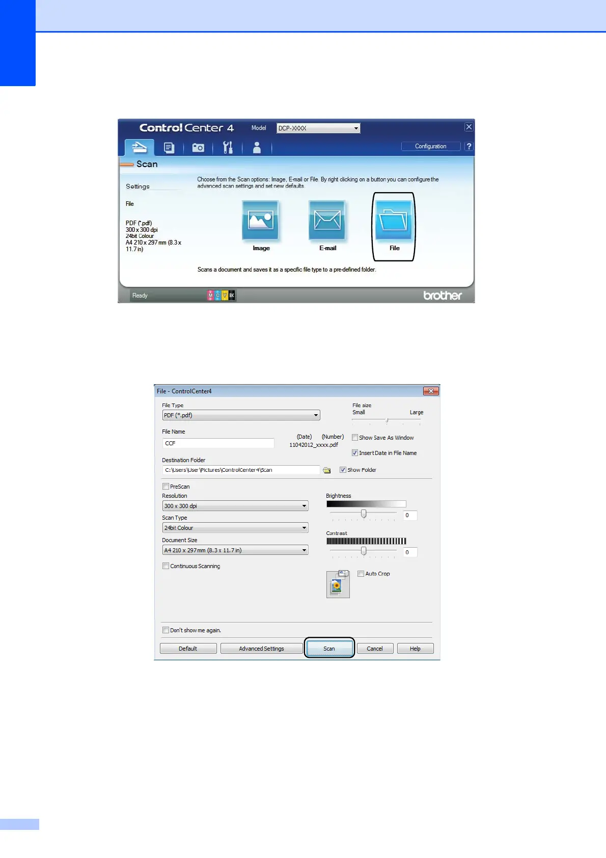 The machine starts the scanning process. The folder where the scanned data is saved will