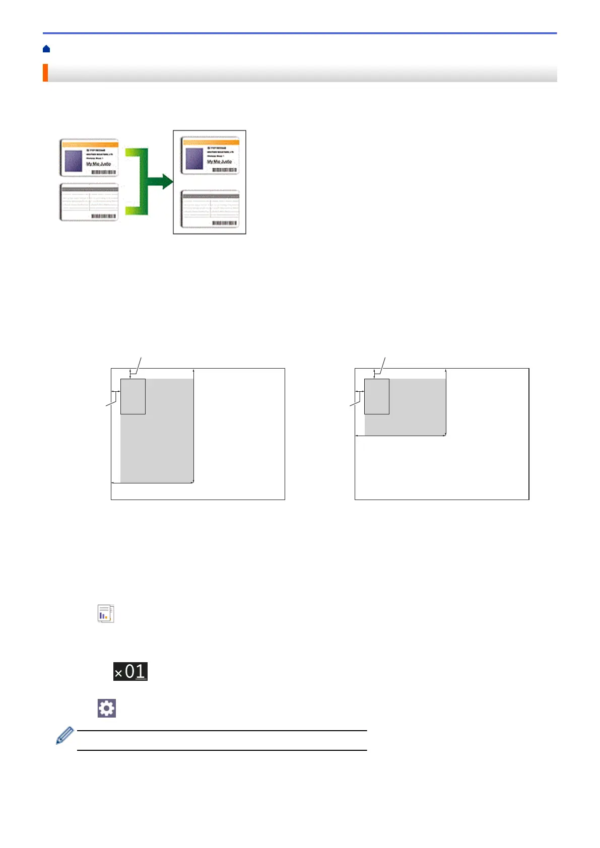 Use the [2in1(ID)] feature to copy both sides of an identification card onto one page, keeping the original