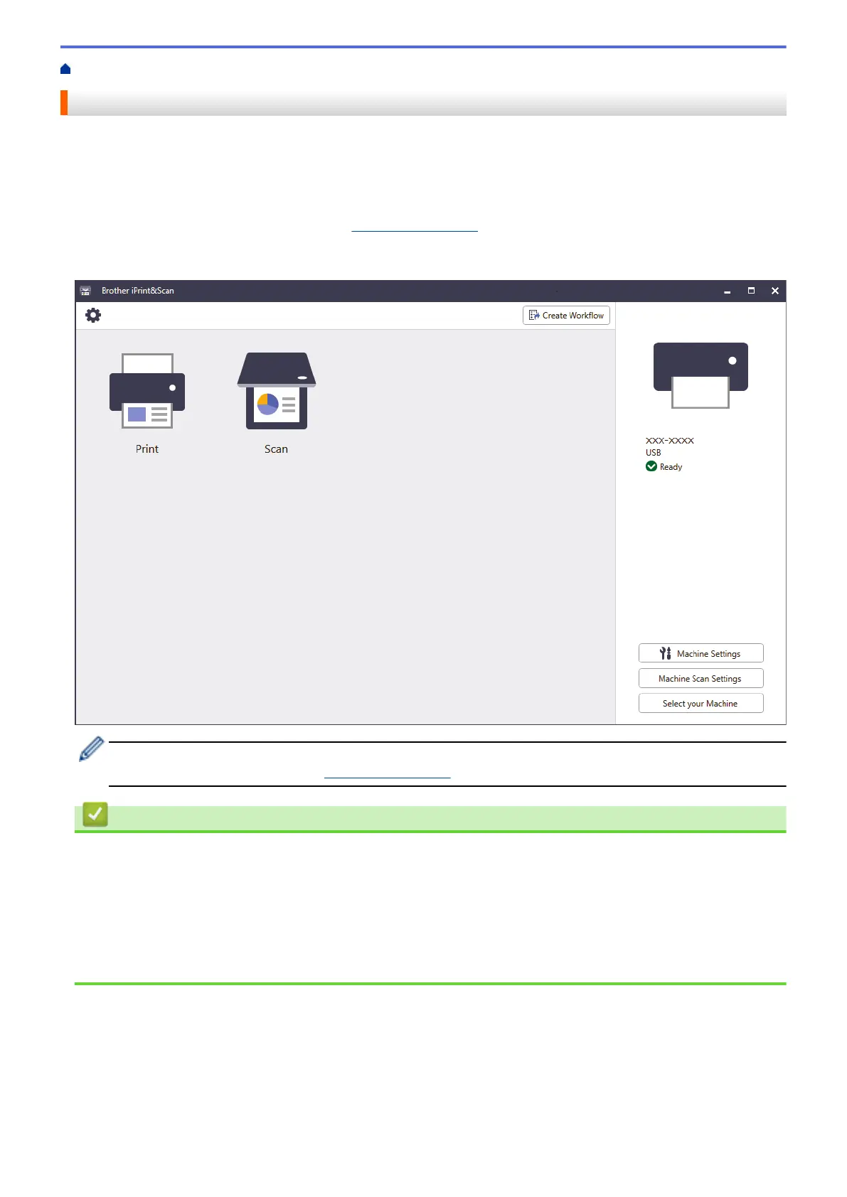 The following screen shows an example of Brother iPrint&Scan for Windows. The actual screen may differ