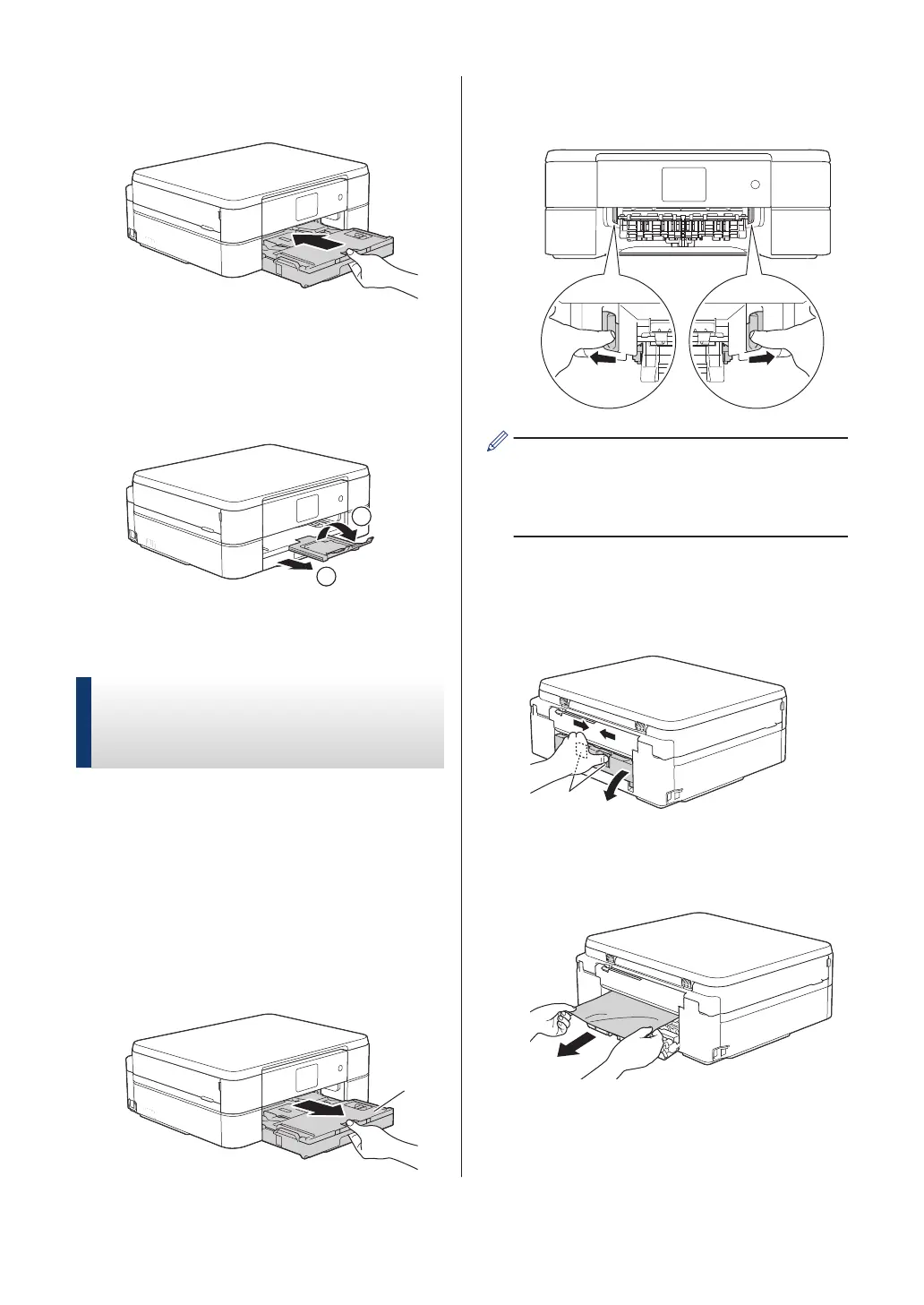 Pull the paper tray (1) completely out of