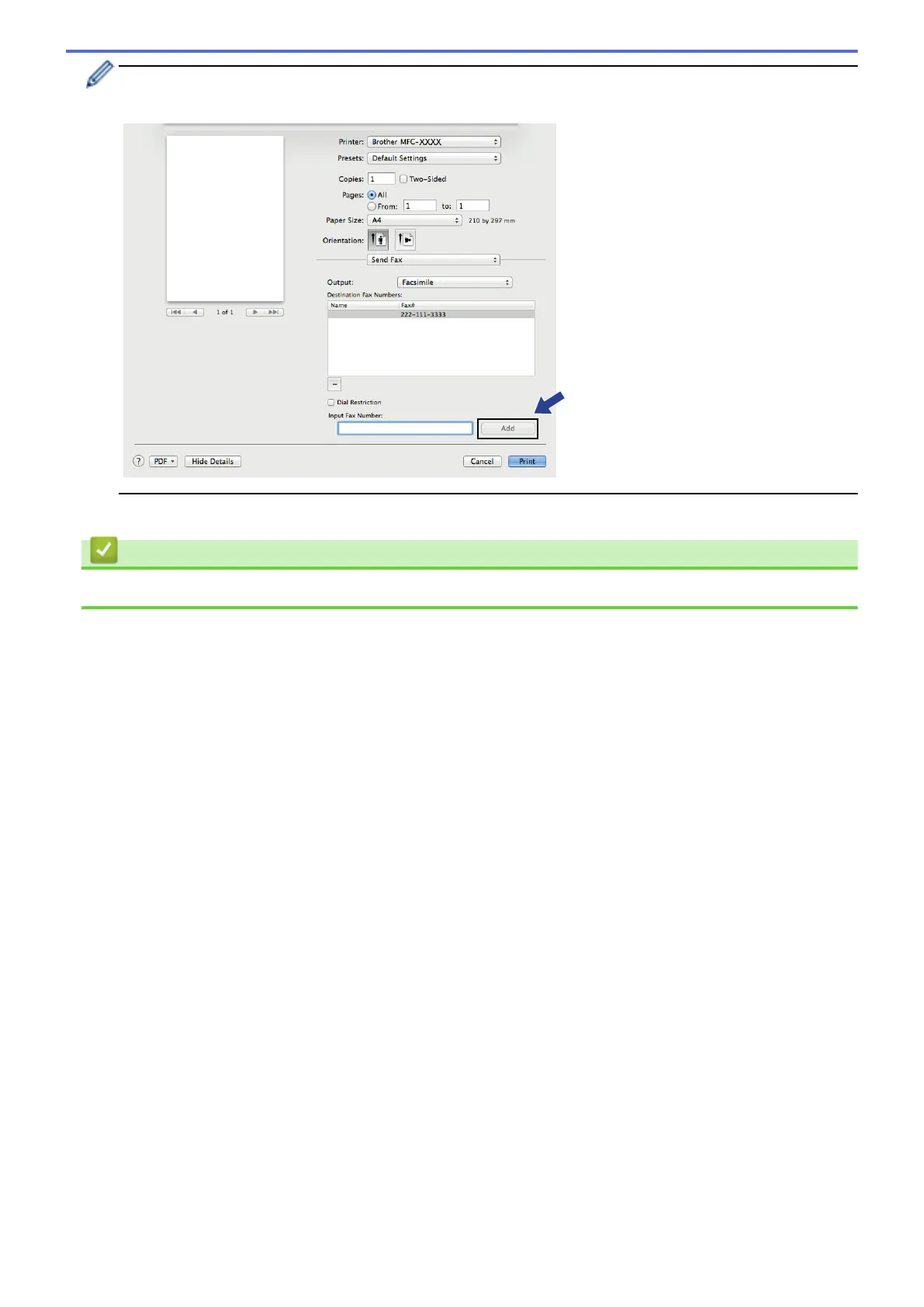To send a fax to more than one number, click the Add button after entering the first fax number and type