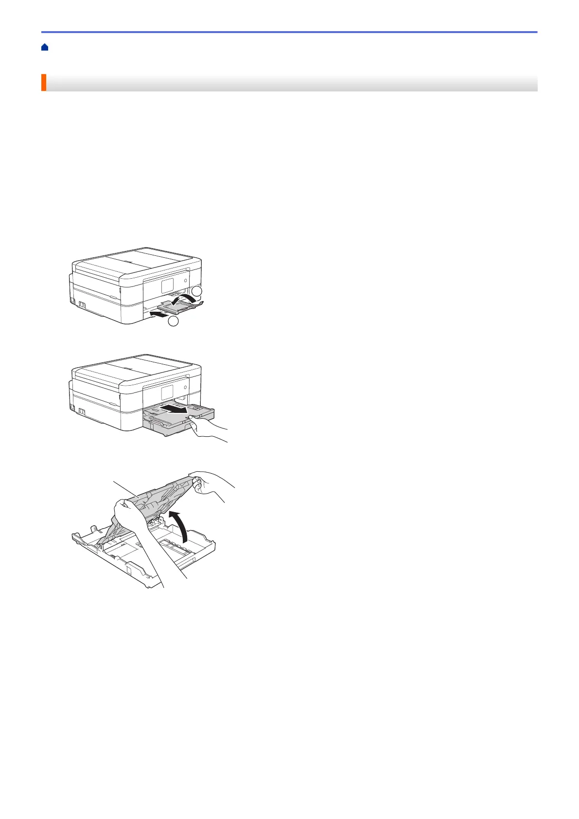 illustration. Gently press and slide the paper width guides (1) and paper length guide (2) to fit the size of the