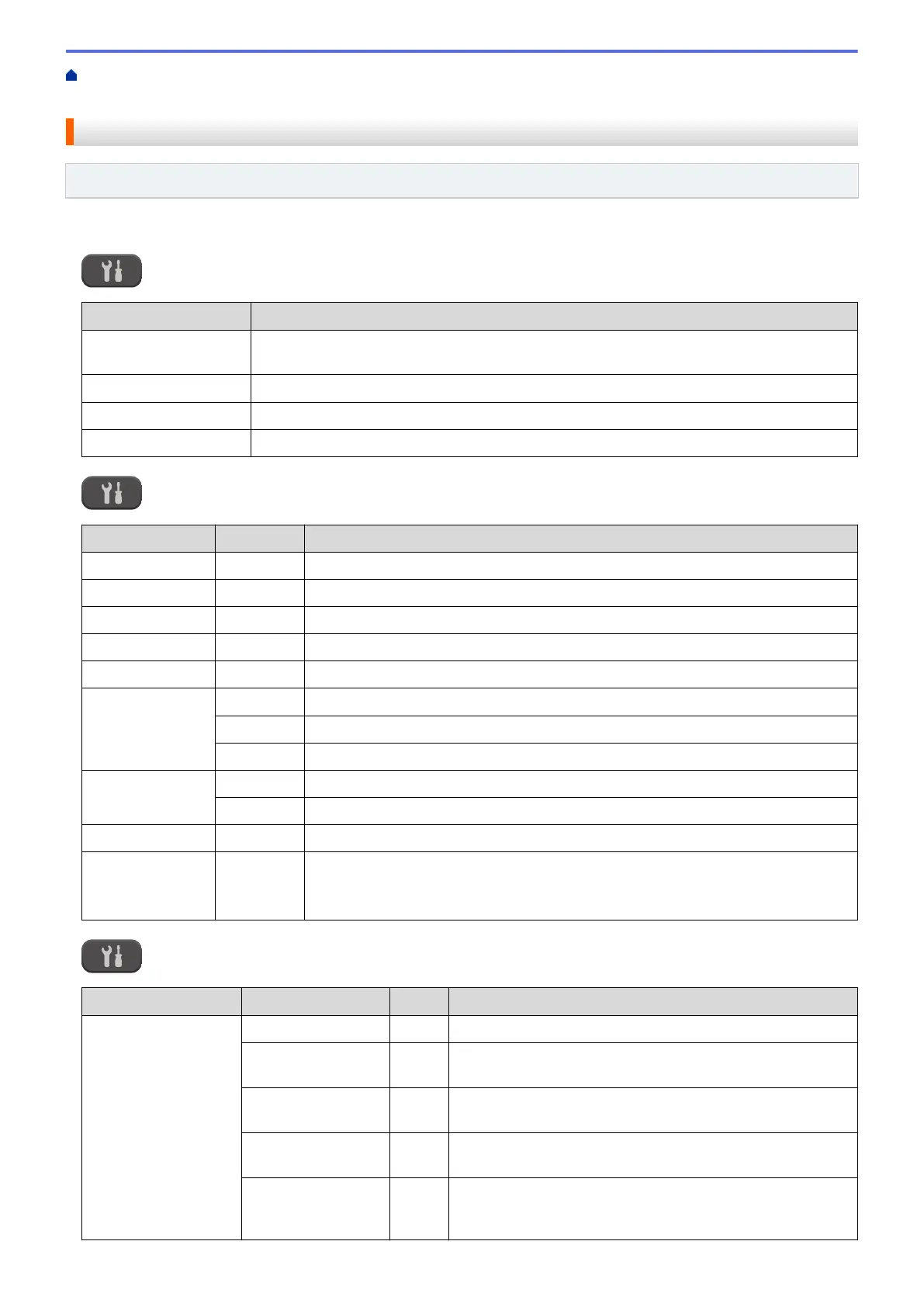 Settings Tables (1.8"(44.9 mm) Colour LCD)