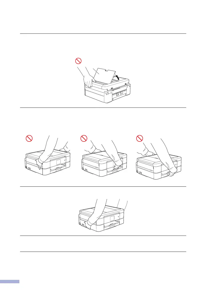 DO NOT carry the product by holding the scanner cover, the Jam Clear Cover, the manual