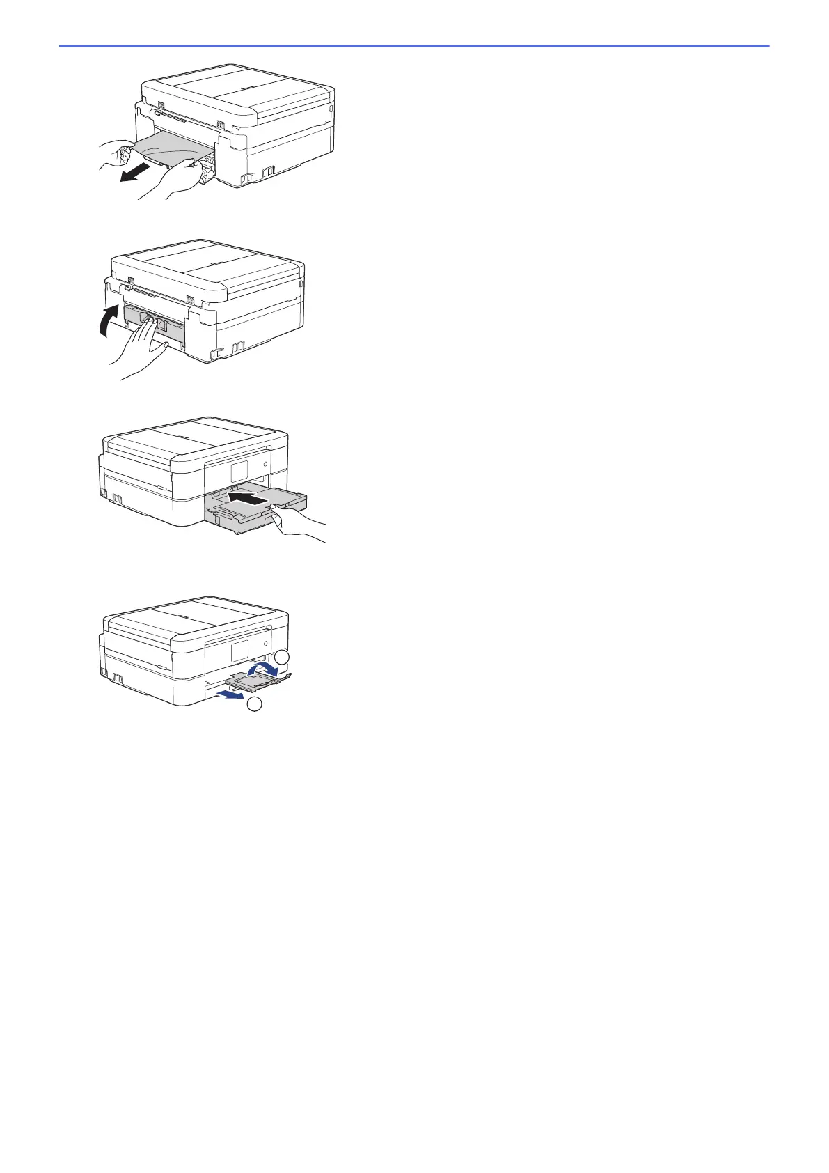 8. While holding the paper tray in the machine, pull out the paper support (1) until it locks into place, and then