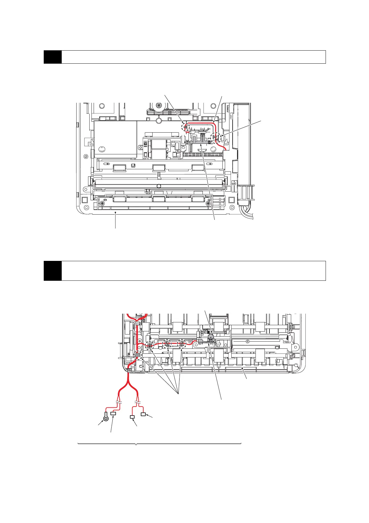 ADF unit reverse side (For ADF models only): document detection sensor harness