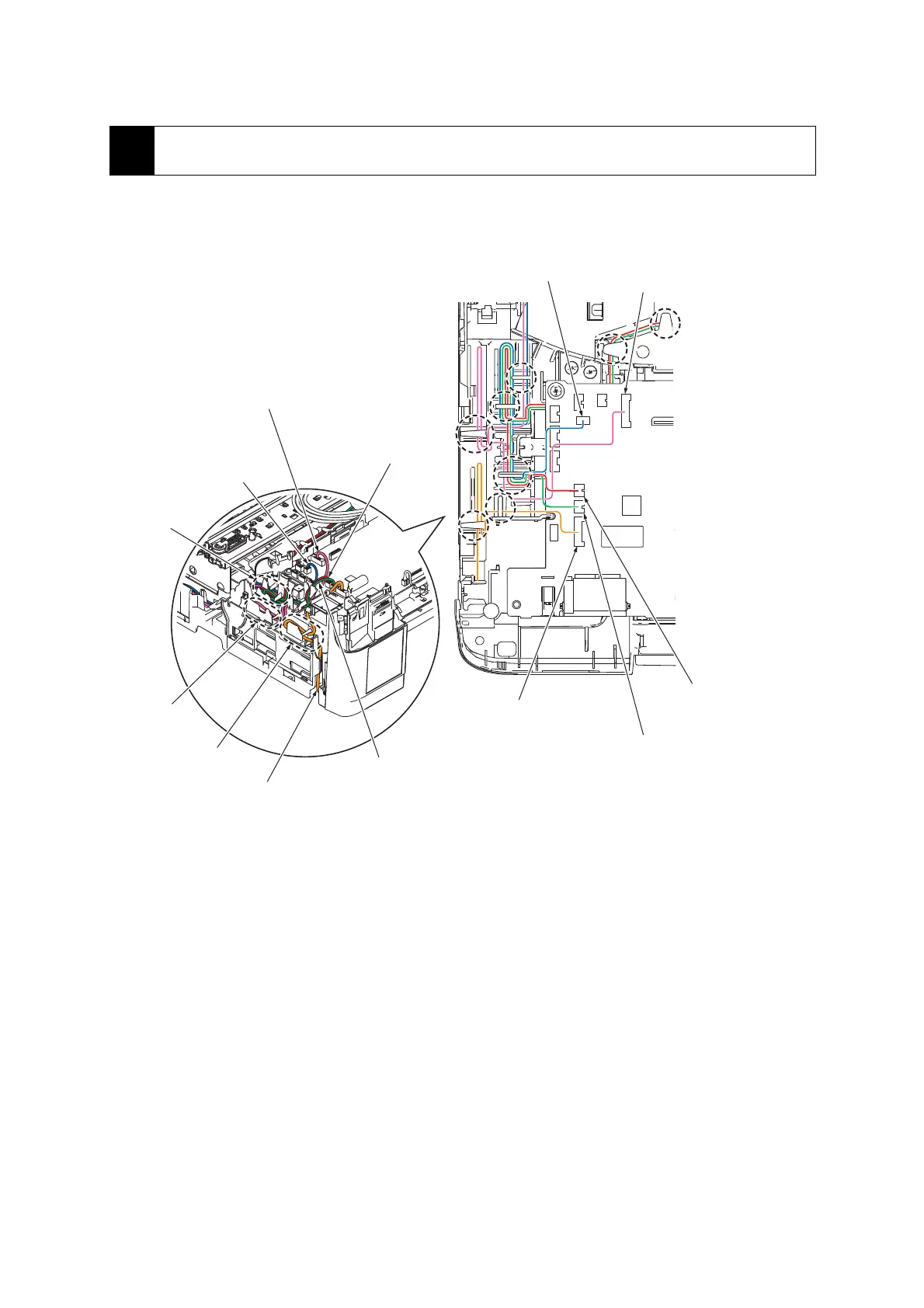 • Bend the carriage motor harness, ASF motor harness, and paper feed motor harness in "z"