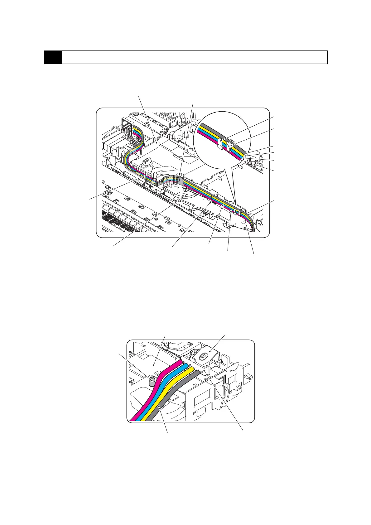 Note Bind the ink tubes with the two tube clamps. Bind magenta, cyan, and yellow together from