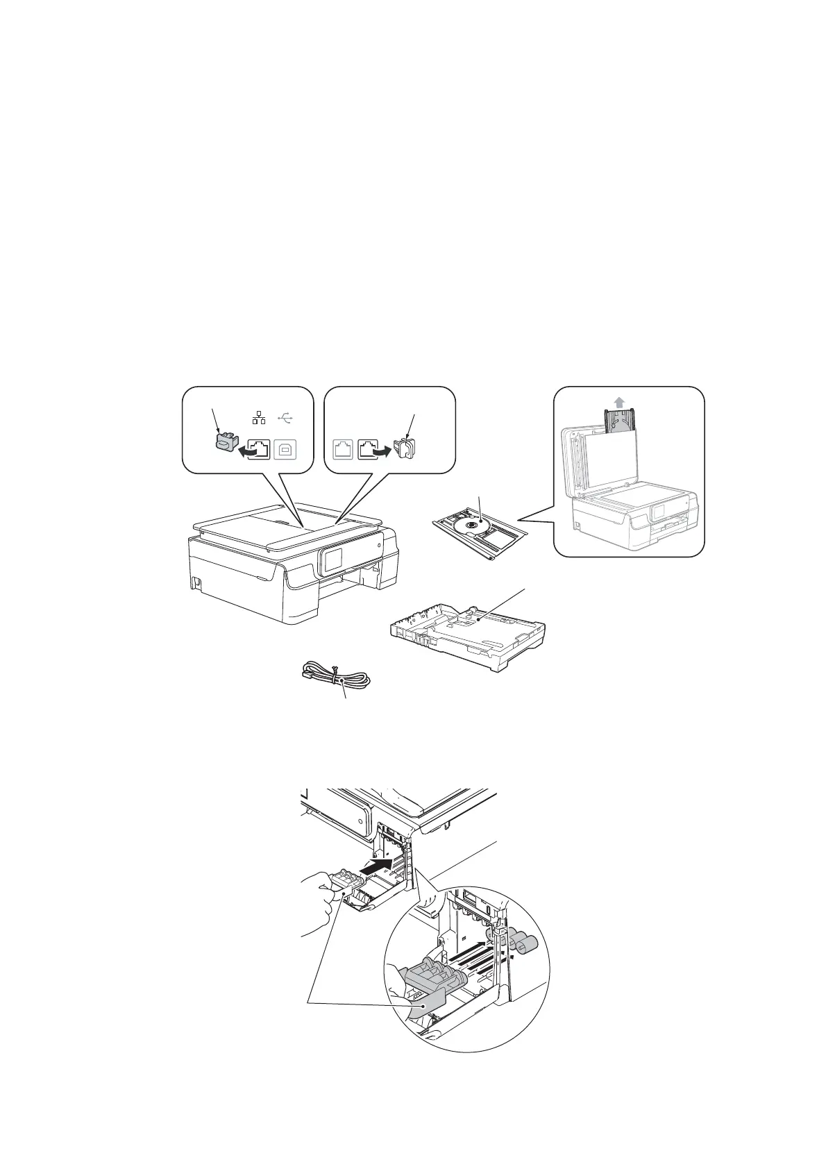 - LAN cable (when connected). (When not connected, remove the LAN port cap.)