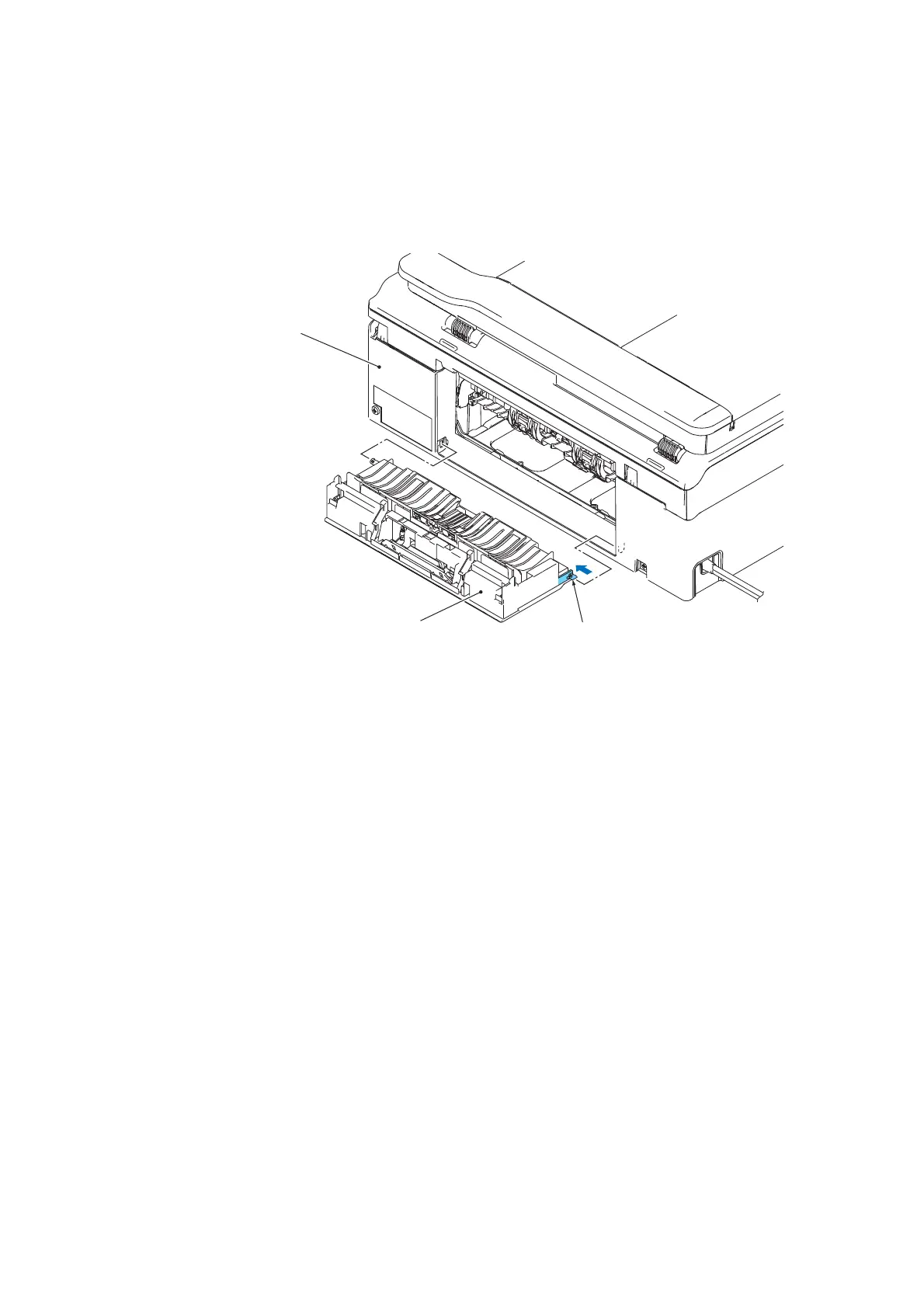 (2) Lightly push the right edge of the jam clear cover (viewed from the rear) inwards using a