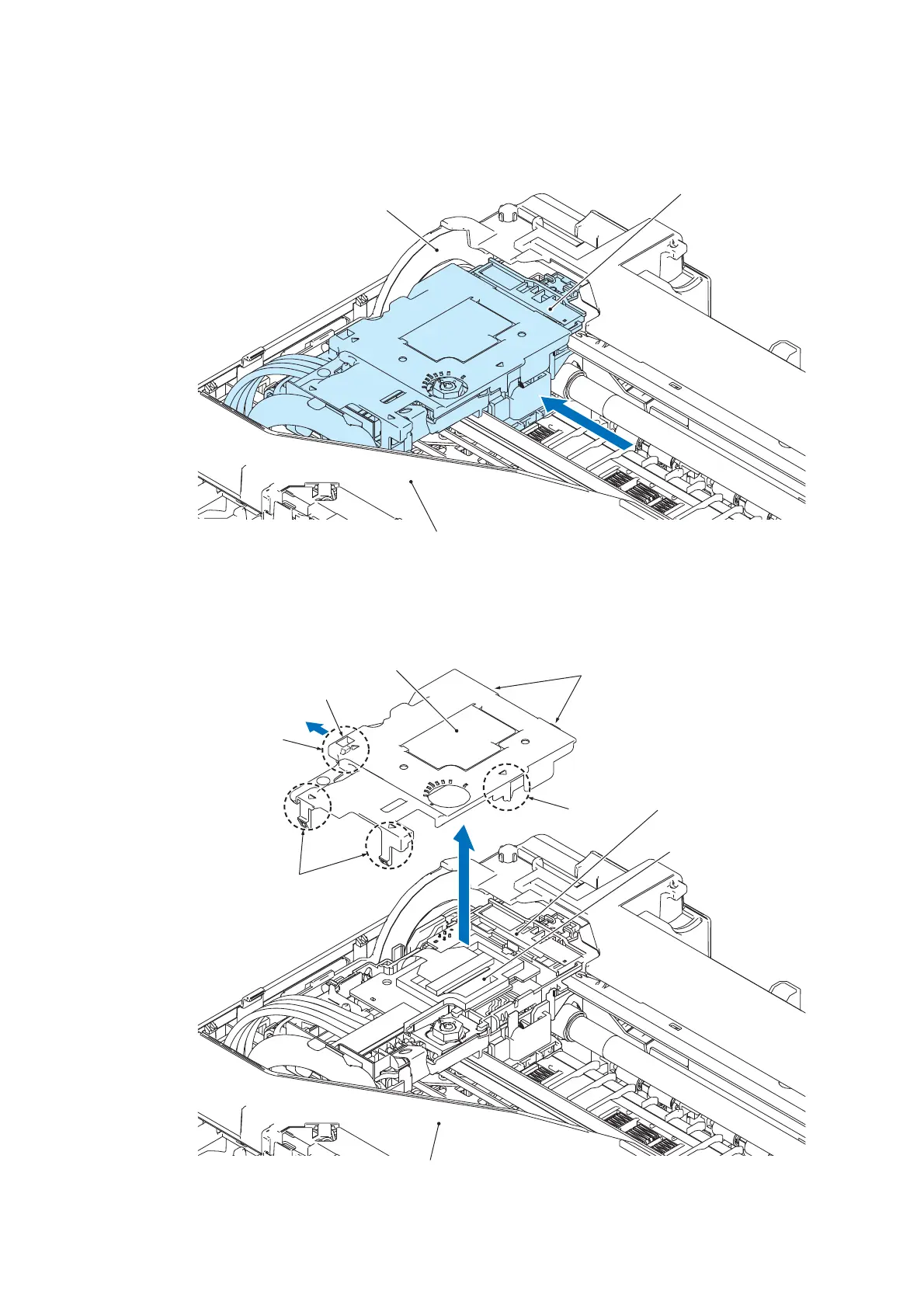(8) Move the head/carriage unit to the left end of its travel by hand (to a position where the entire