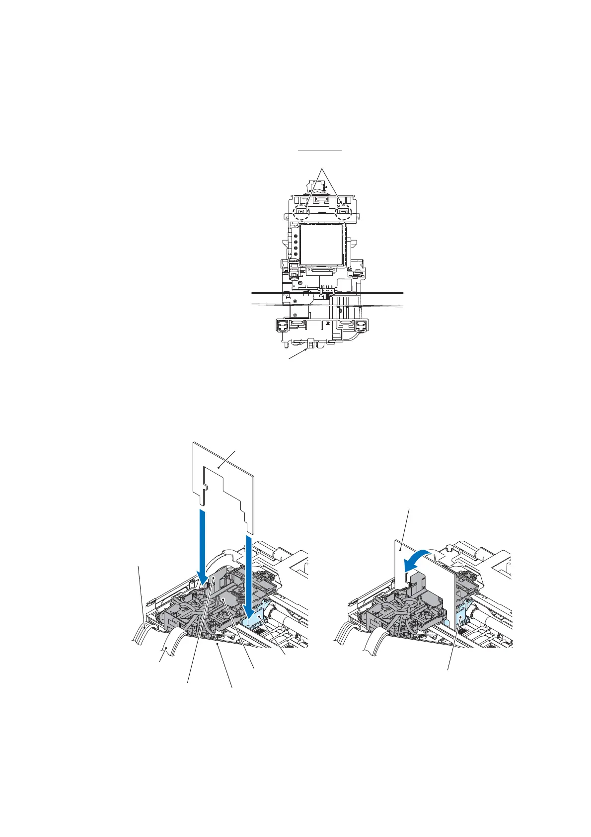 4) Fit the front end of the head/carriage unit first over the CR frame and then set the rear end