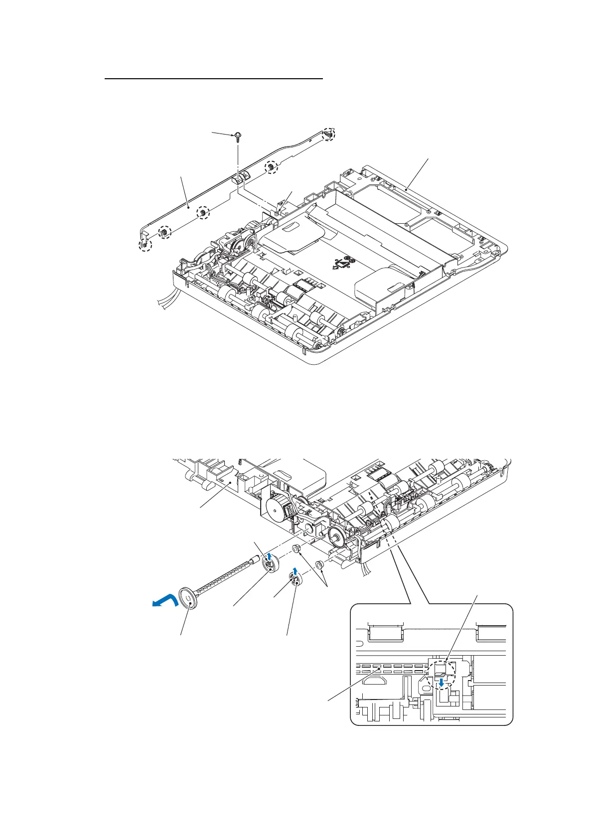 (19) Remove all bearings from document feed roller 1 and 2.