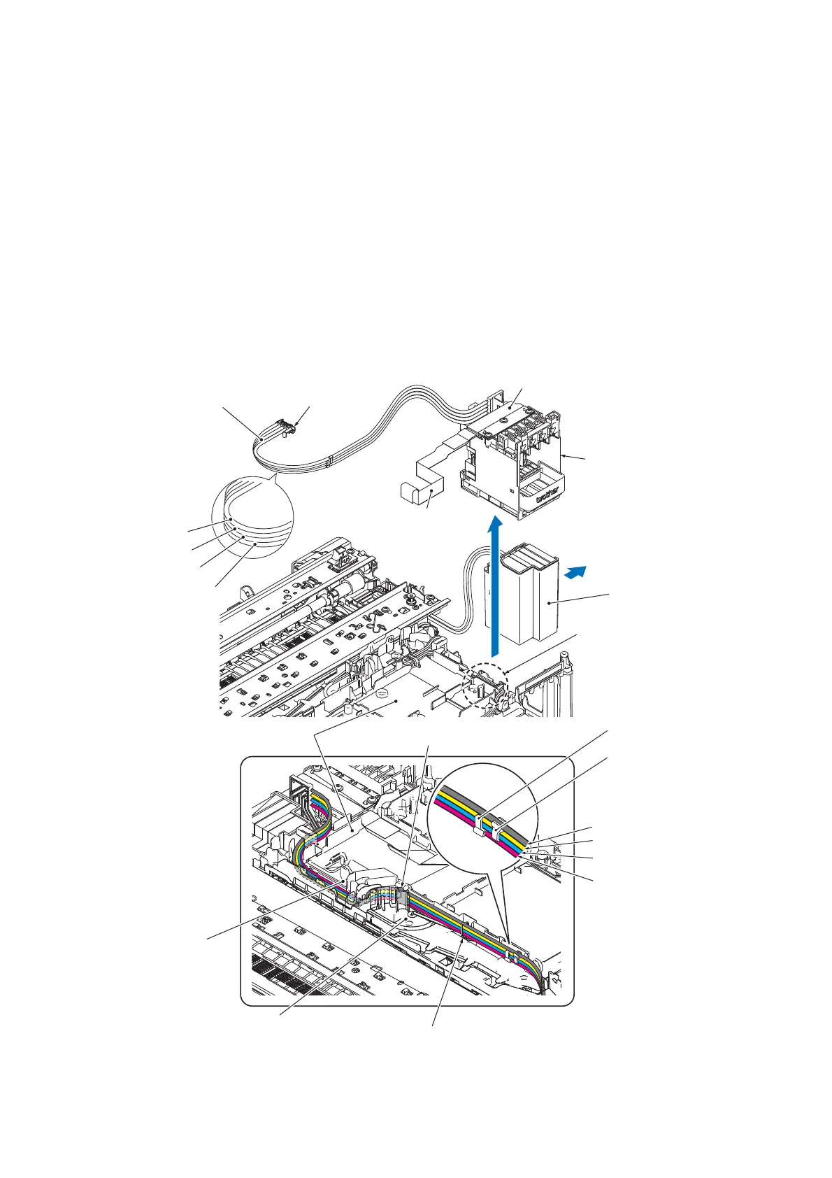 Timing Belt, and Leveler Roller ASSY" in this chapter to remove the ink supply tubes from the