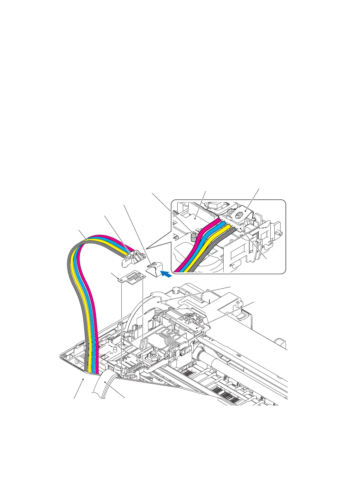 • After installing the ink refill ASSY, route the ink supply tubes to the tube guide based on the color