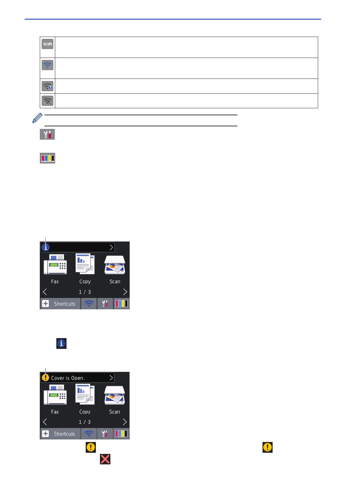 When an ink cartridge is near the end of its life or having a problem, an error icon is displayed on the ink
