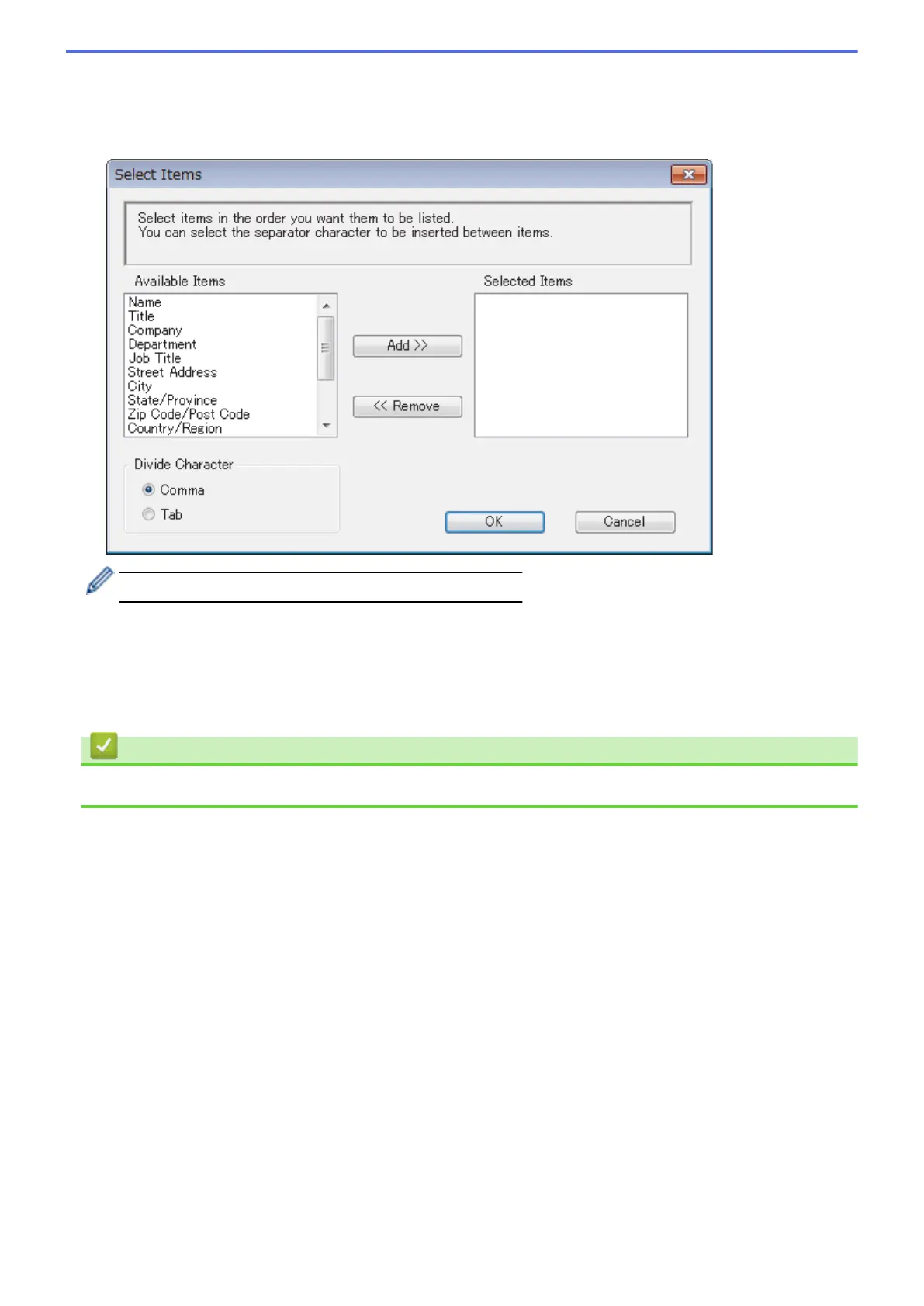 4. In the Available Items field, select the data you want to export, and then click Add >>.
