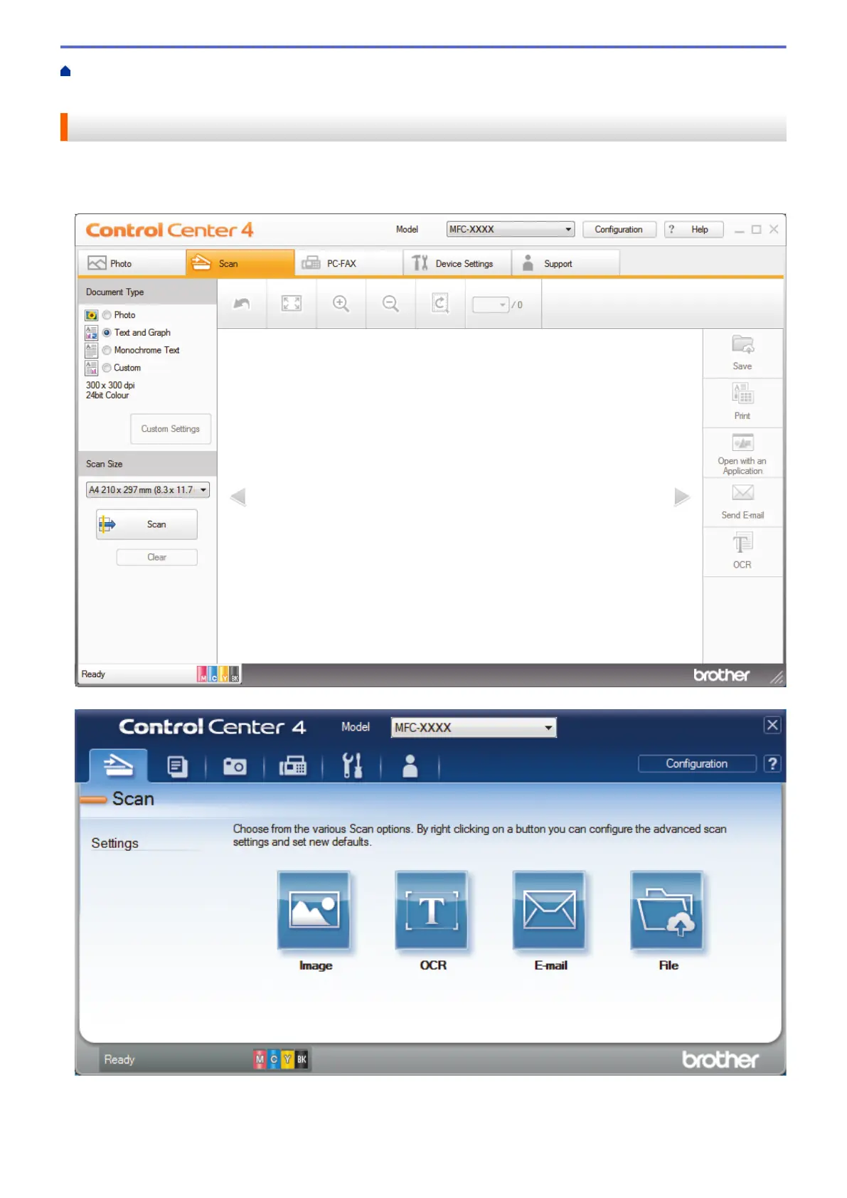 ControlCenter4 has two operation modes: Home Mode and Advanced Mode. You can change modes at any