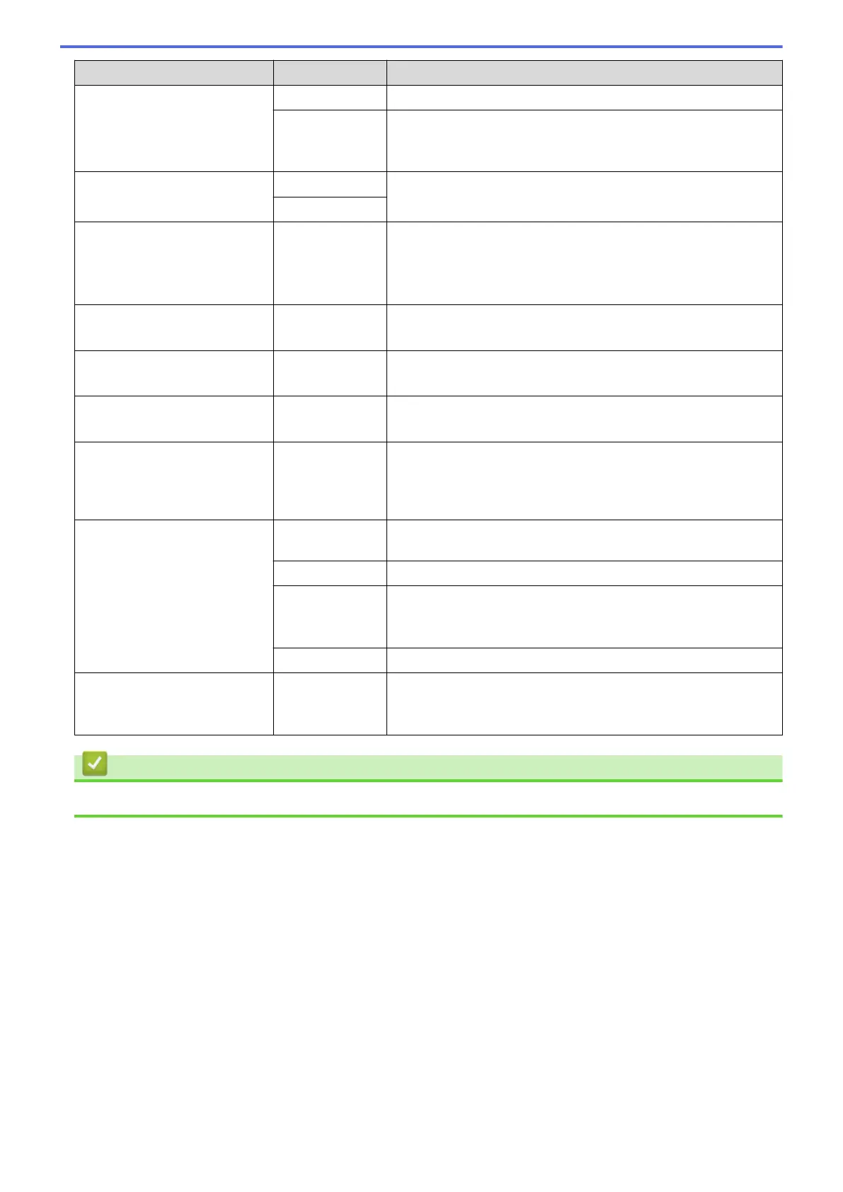 • Settings and Features Tables