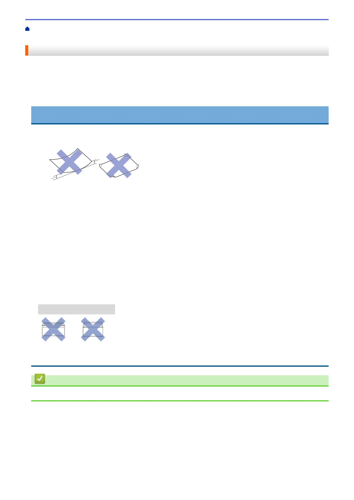You may experience paper feed problems caused by the thickness, size and flap shape of the envelopes you