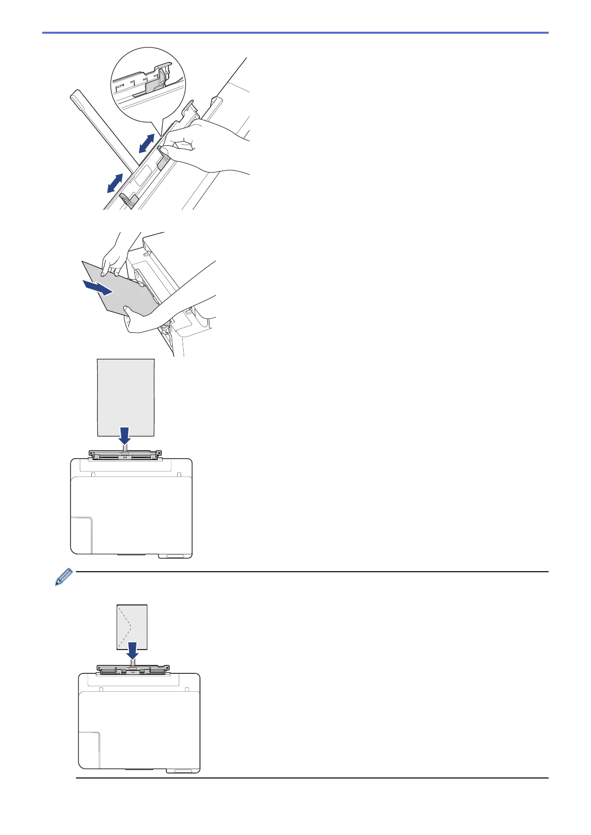 When using envelopes, load the envelopes with the printing surface face up and the flap on the left as
