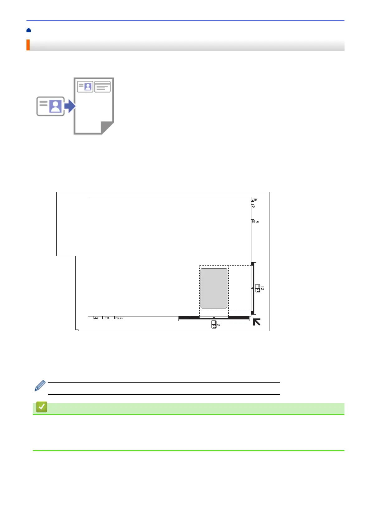 Use the 2 in 1 ID feature to copy both sides of an identification card onto one page, keeping the original card