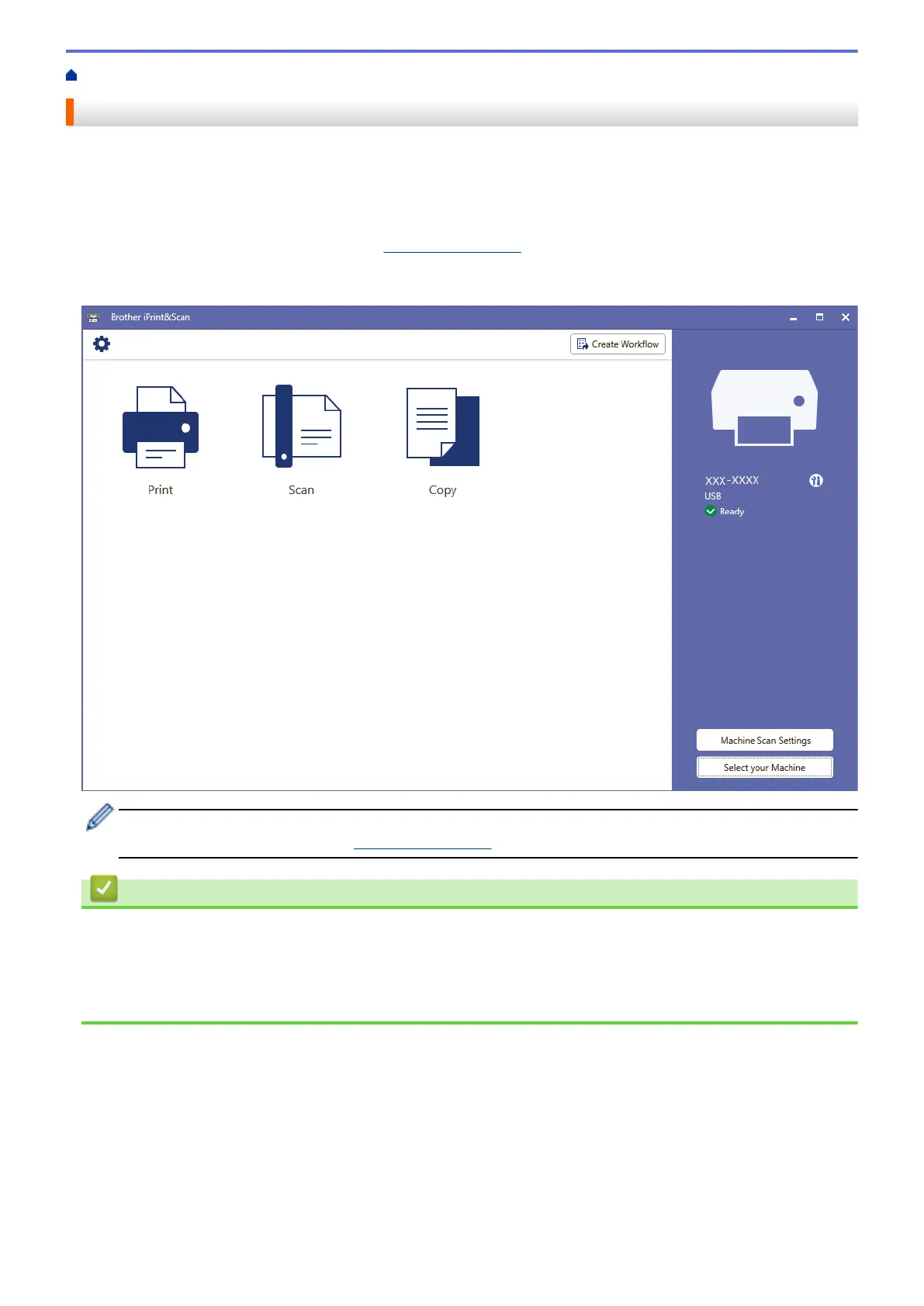 The following screen shows an example of Brother iPrint&Scan for Windows. The actual screen may differ