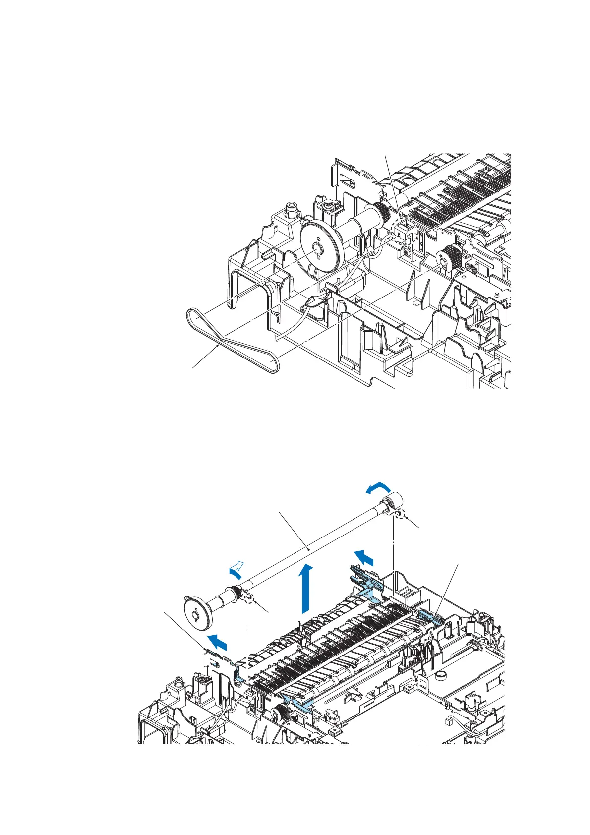 Assembling Note Route the Paper ejection roller belt through the tension block in