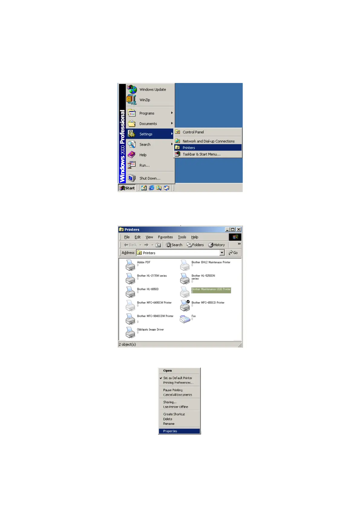 The [Brother Maintenance USB Printer Properties] window appears as shown
