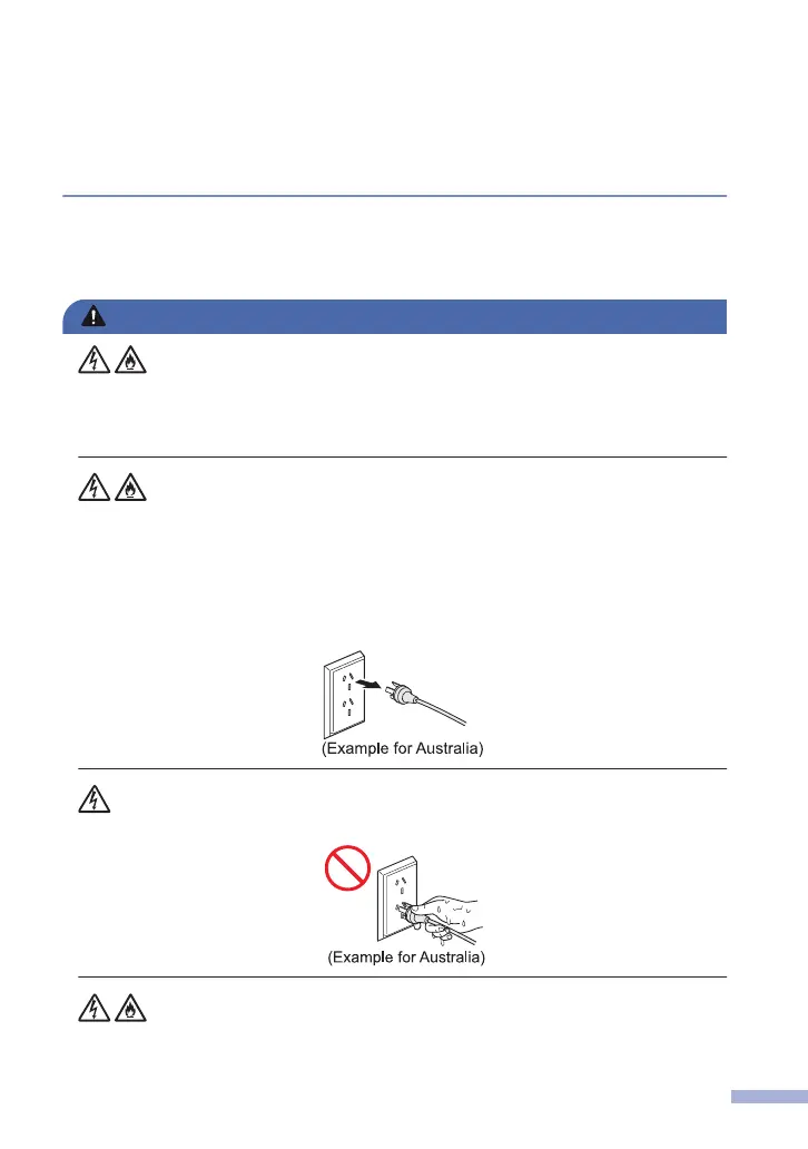 the telephone line cord first (MFC models only) and then the power cord from the electrical