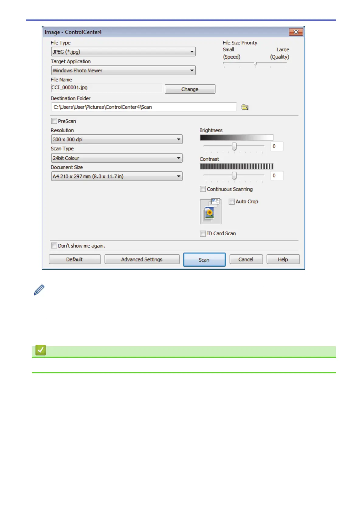 5. Change the scan settings, such as file format, file name, destination folder, resolution and colour, if needed.