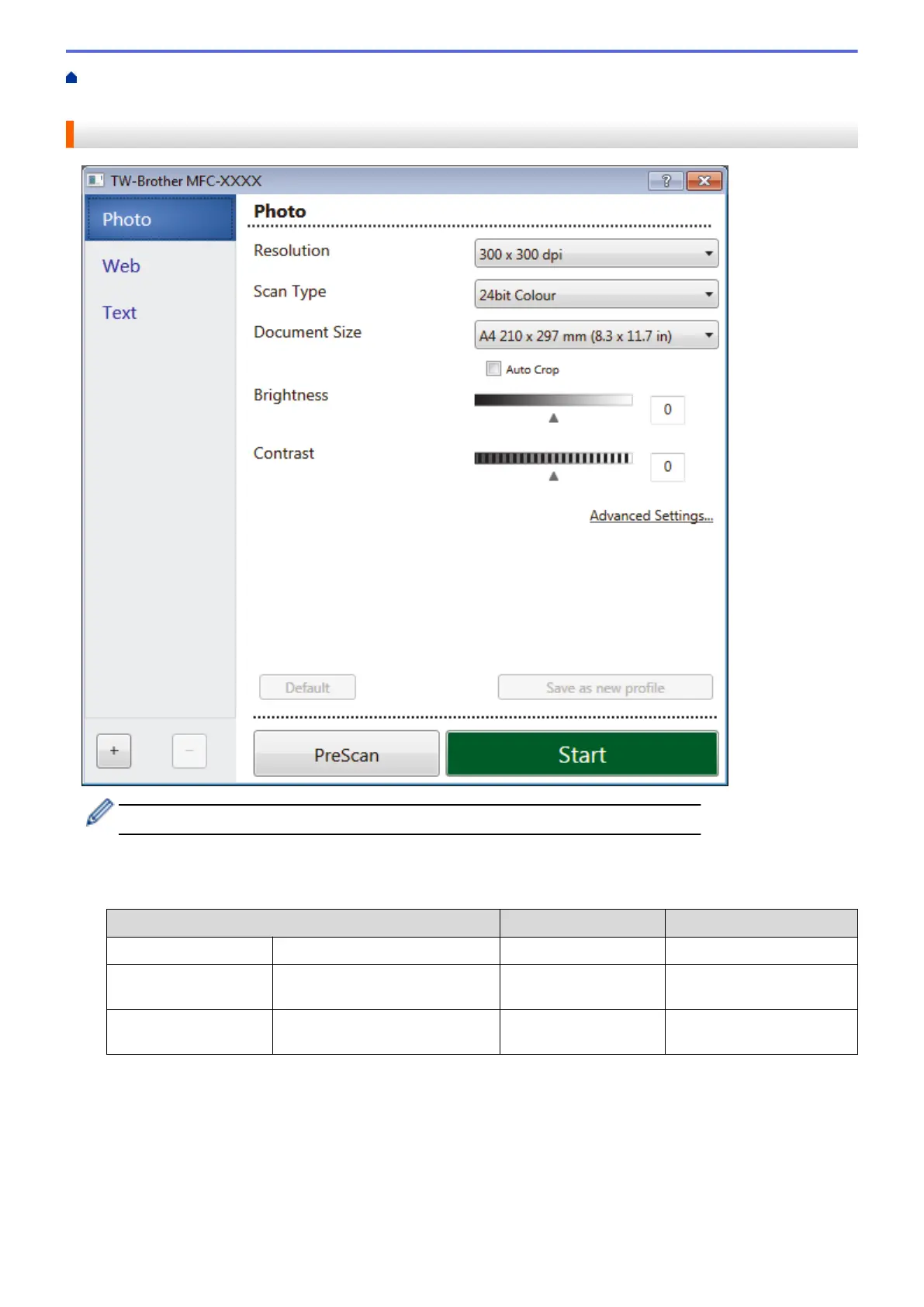 Photo Use for scanning photo images. 300 x 300 dpi 24bit Colour