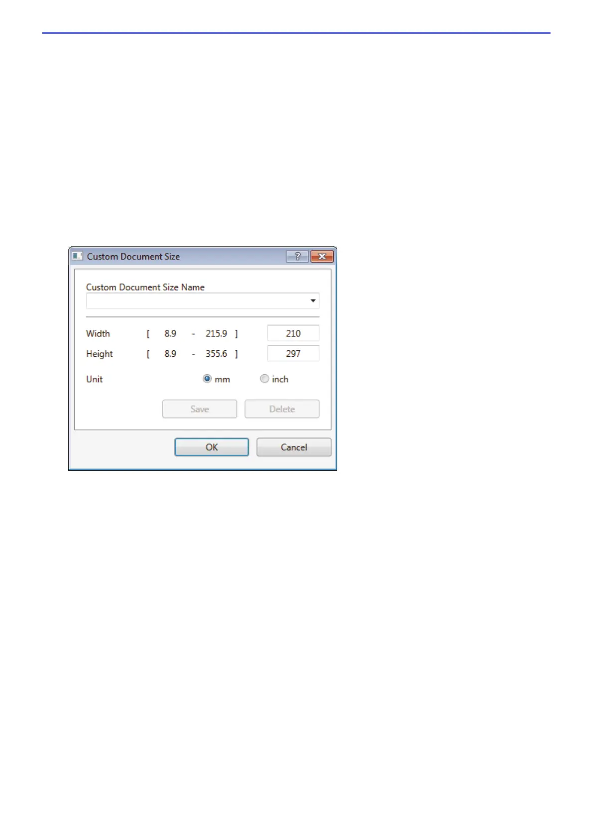 Select the exact size of your document from a selection of preset scan sizes.