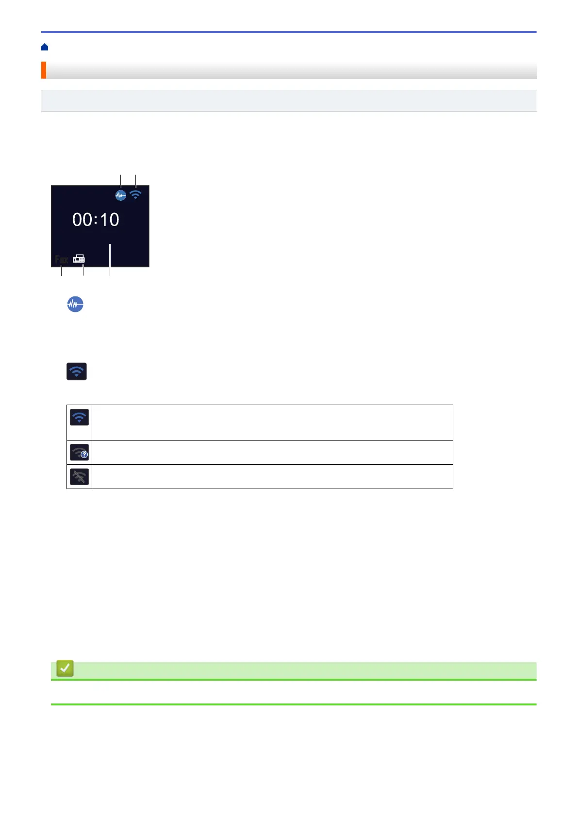 This screen shows the machine’s status when the machine is idle. When displayed, this indicates that your