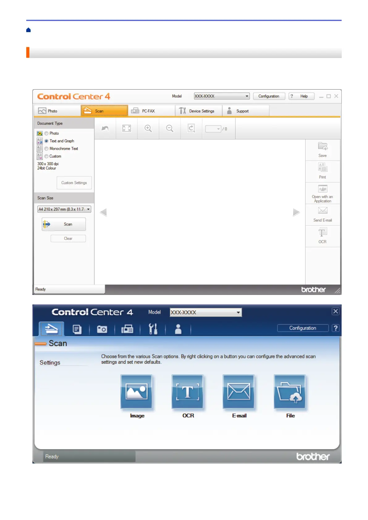 ControlCenter4 has two operation modes: Home Mode and Advanced Mode. You can change modes at any