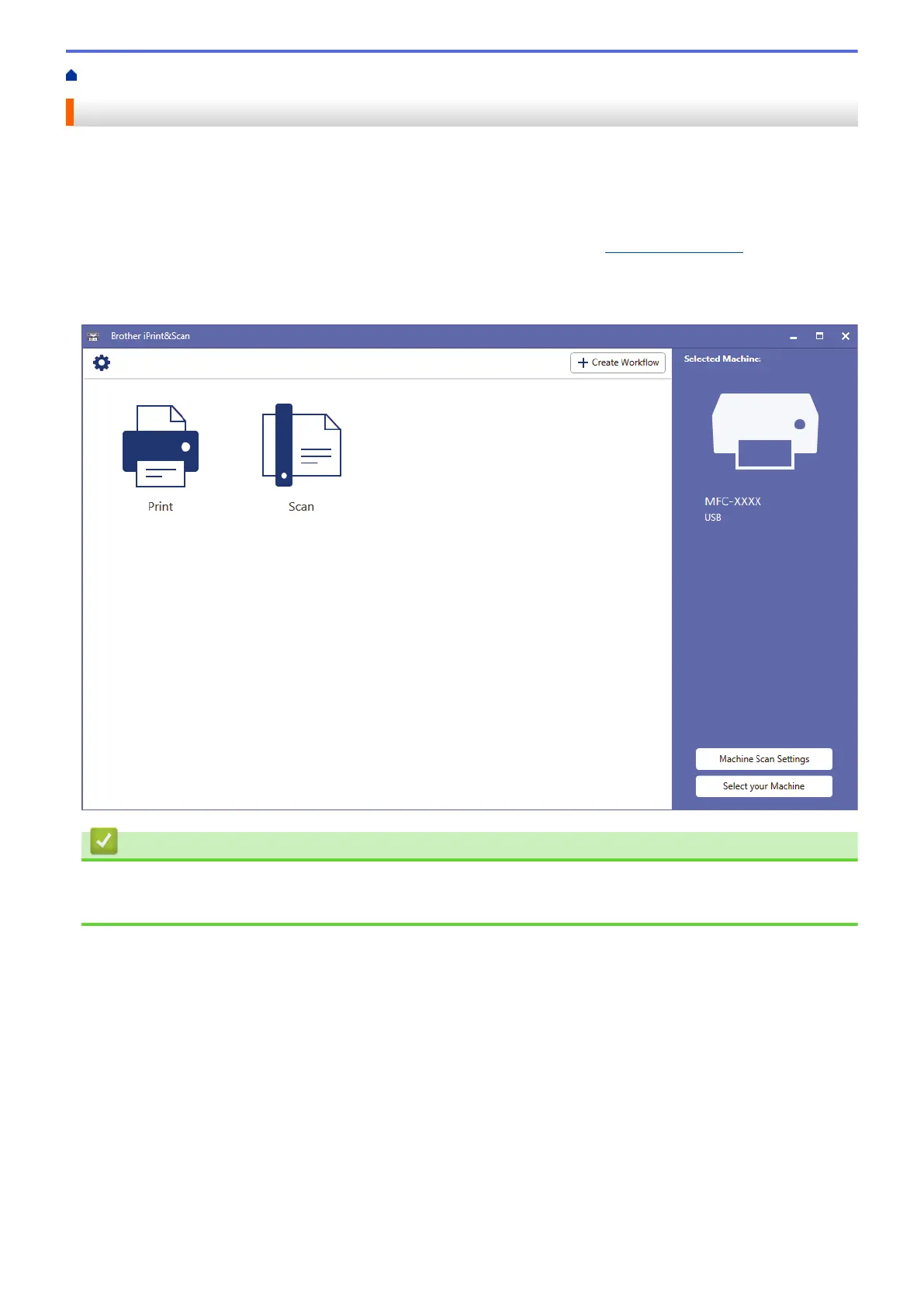 The following screen shows an example of Brother iPrint&Scan for Windows. The actual screen may differ