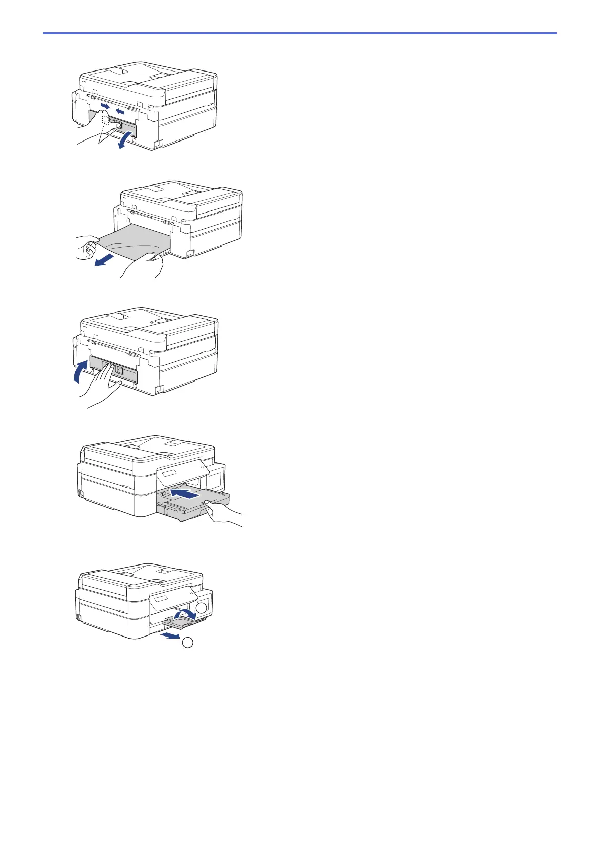 10. Squeeze both levers (1), and then open the Jam Clear Cover at the back of the machine.